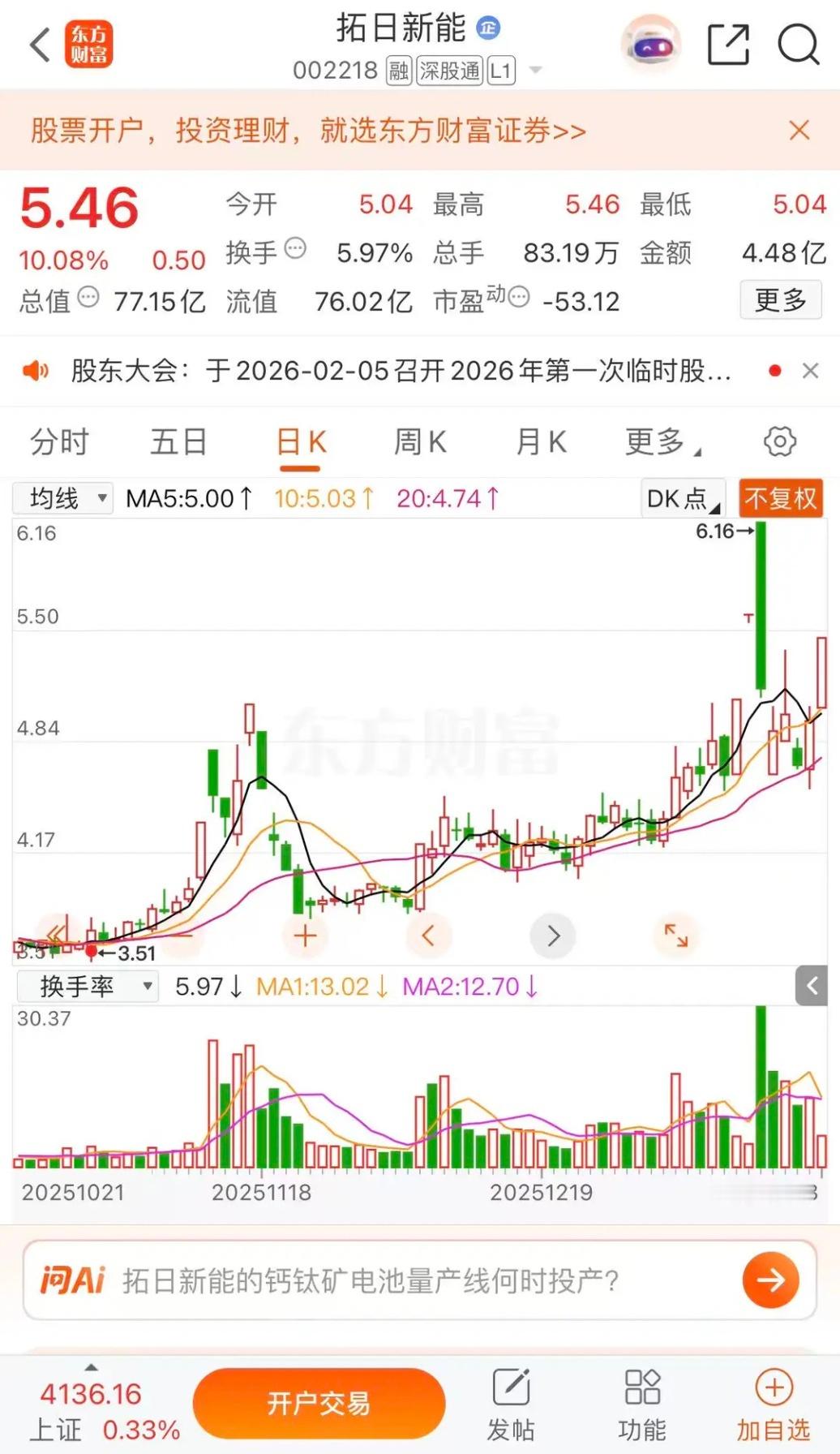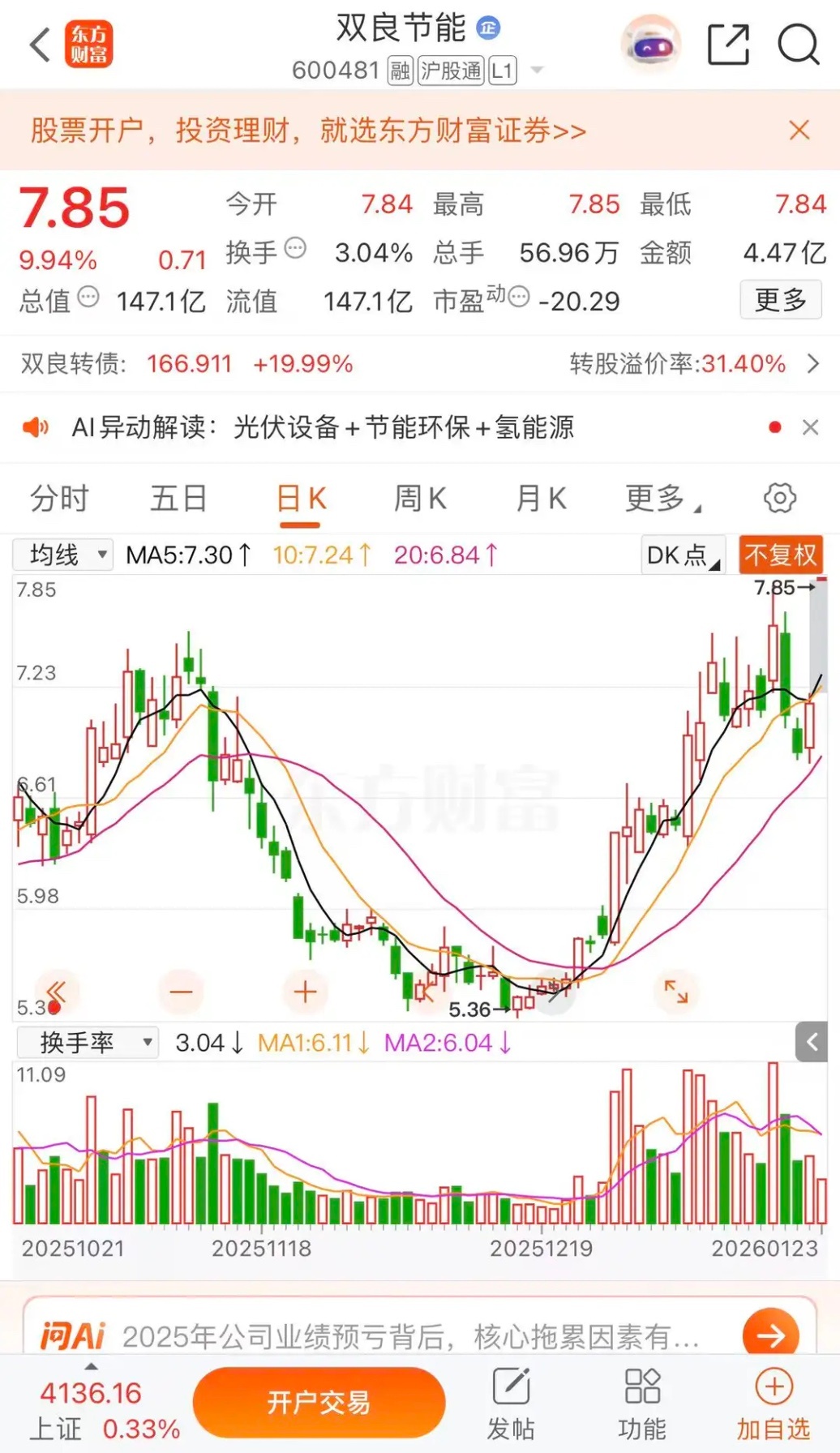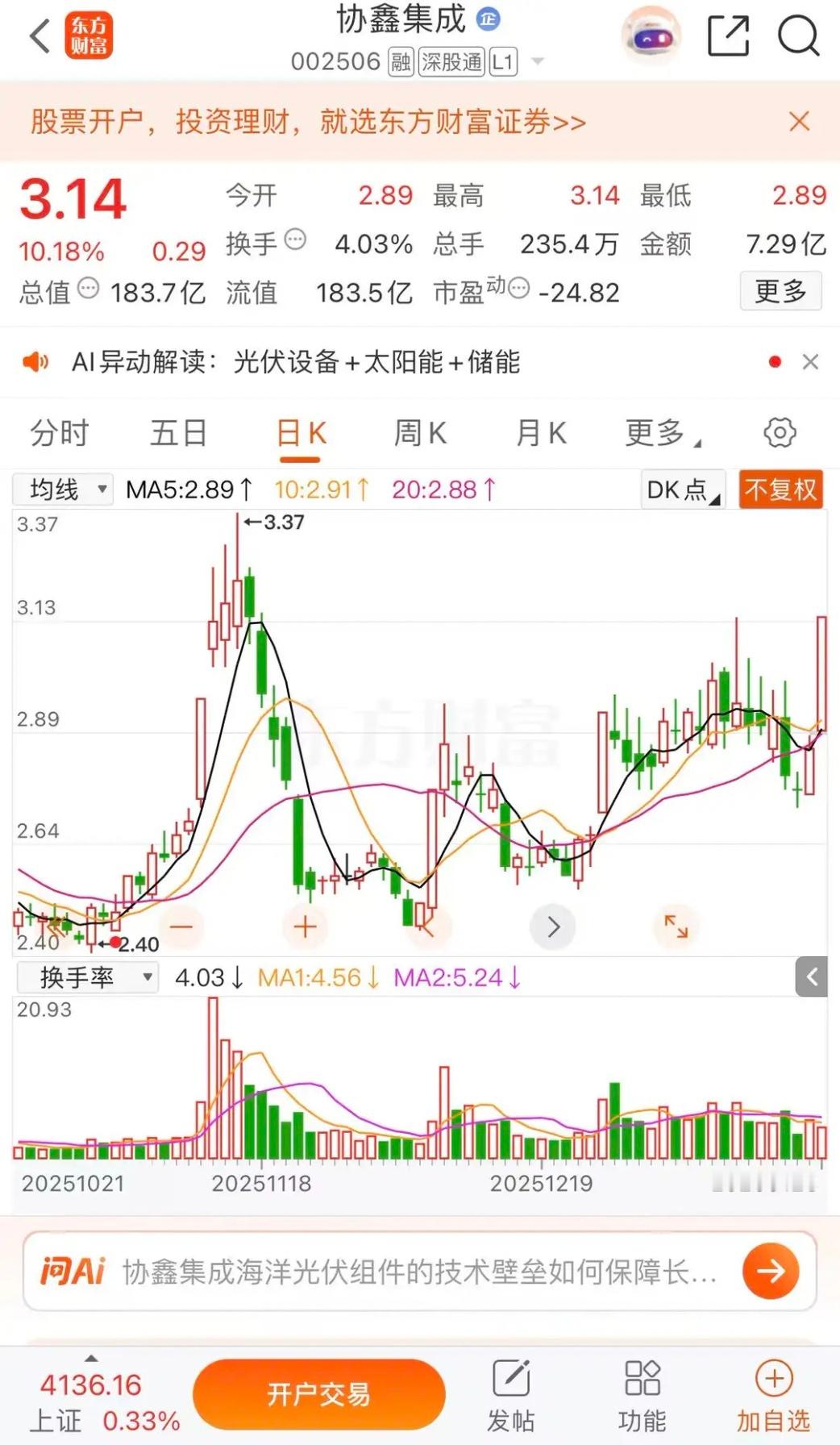 拓日新能涨停,协鑫集成涨停,双良节能冲高回落拓日新能涨停收盘报收5.46元每股,成交金额4.48亿,明日继续涨停,周二冲击6.16近期高点。协鑫集成涨停收盘报收3.14元每股,成交金额7.29亿,明日突破3.37元近期高点。双良节能涨停收盘报收7.85元每股,成交金额4.47亿。明日冲高8.30元每股回落。明日继续光伏板领涨,把控节奏。