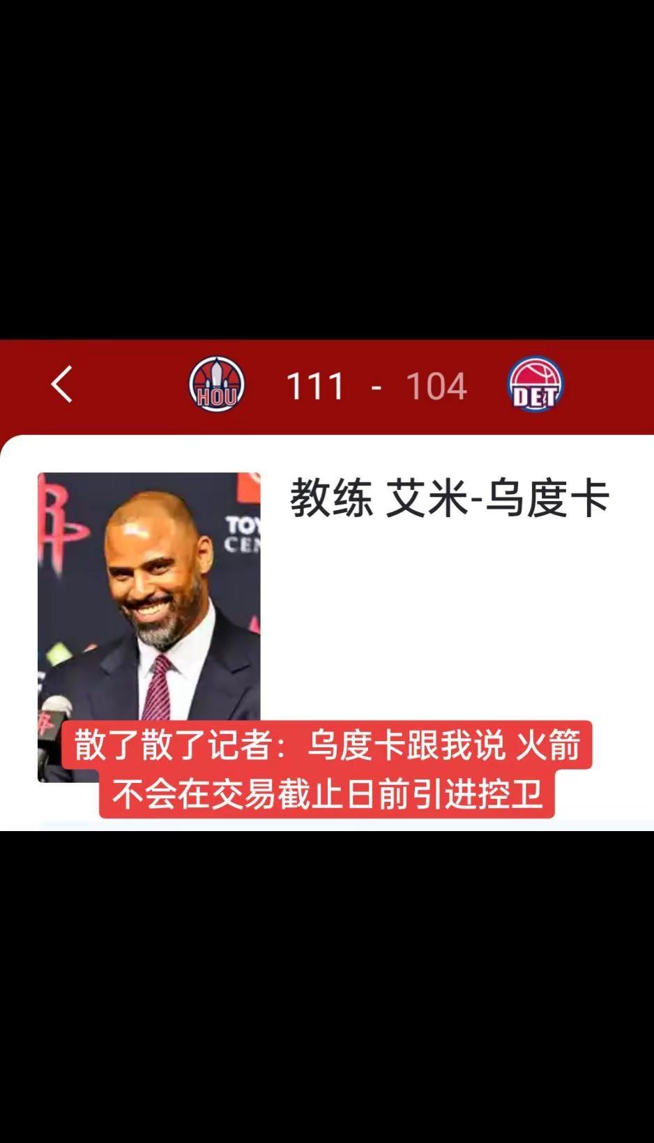 散了散了~记者:乌度卡跟我说 火箭不会在交易截止日前引进控卫火箭 篮球🏀