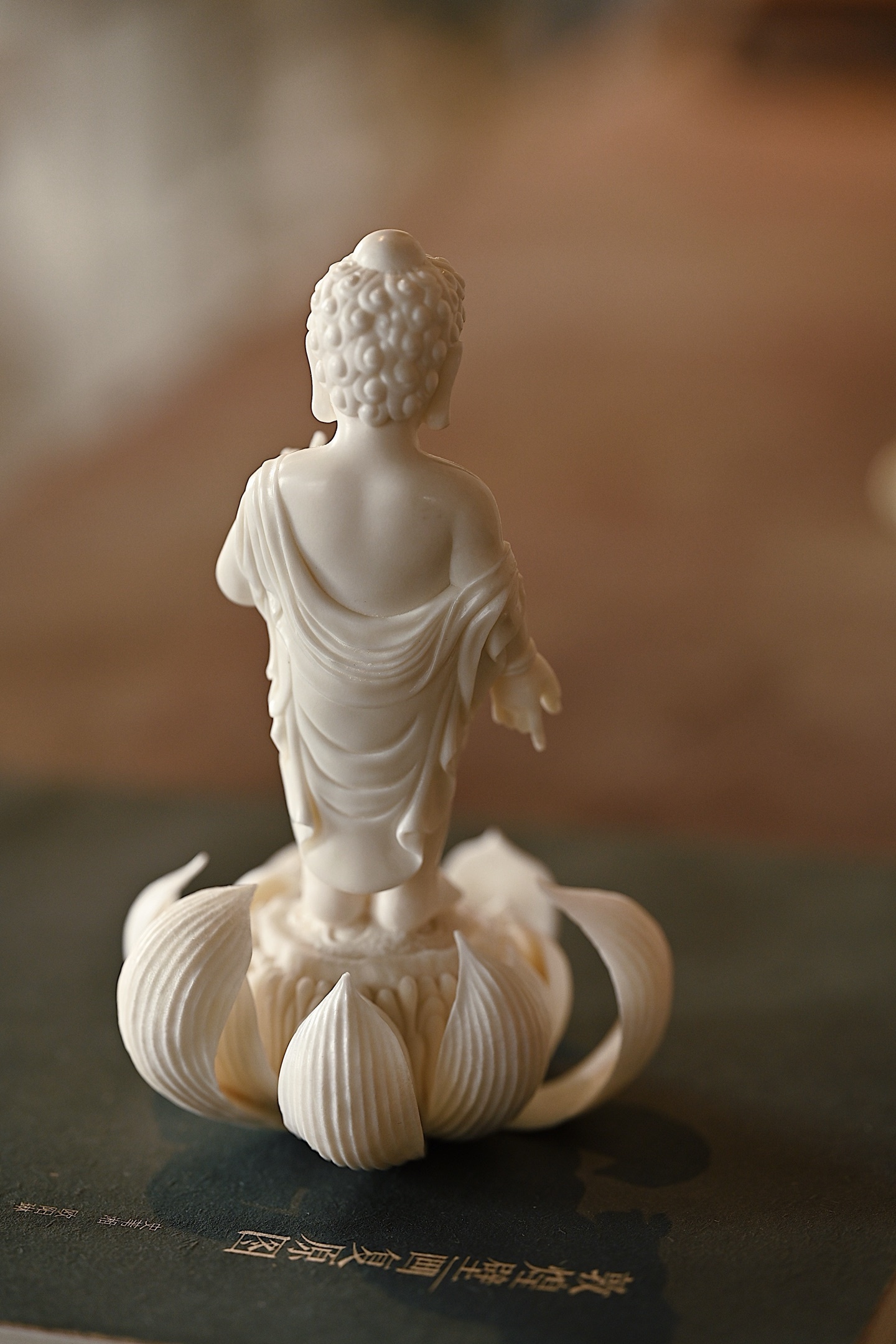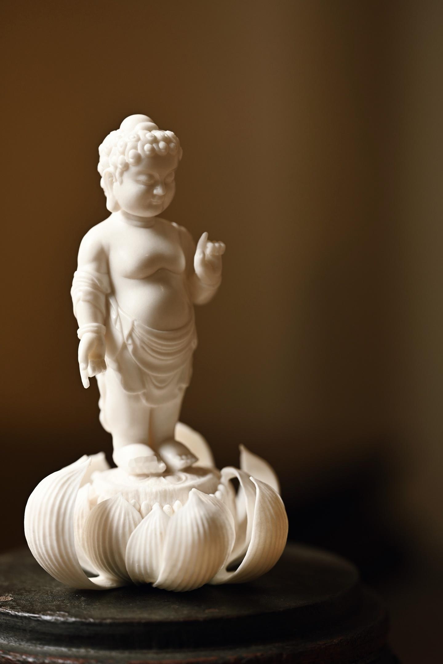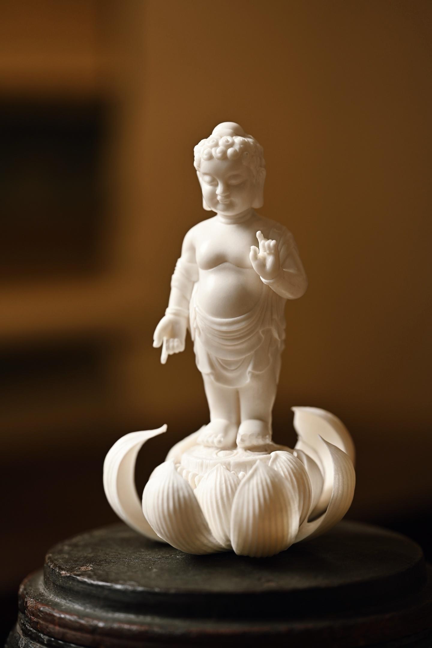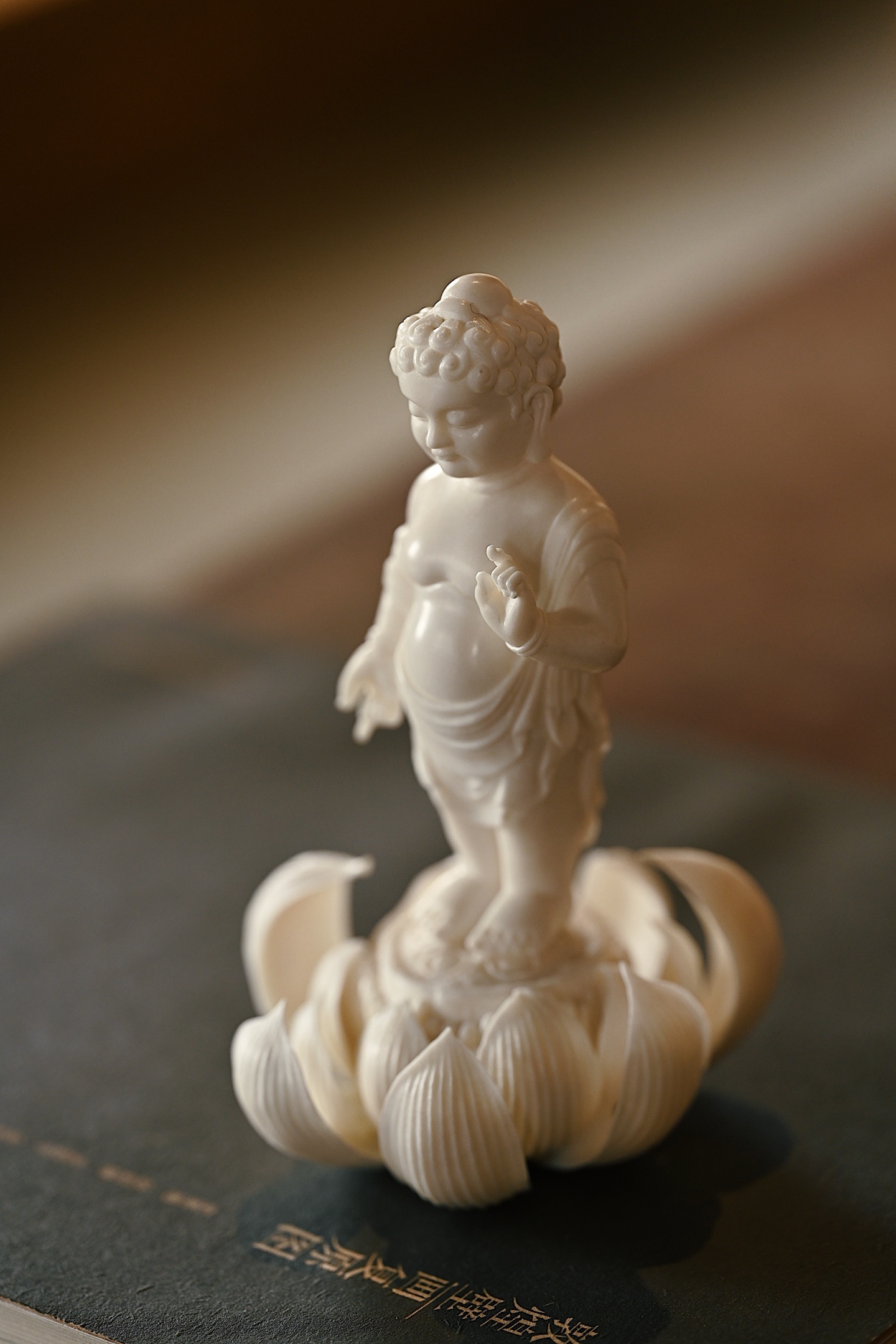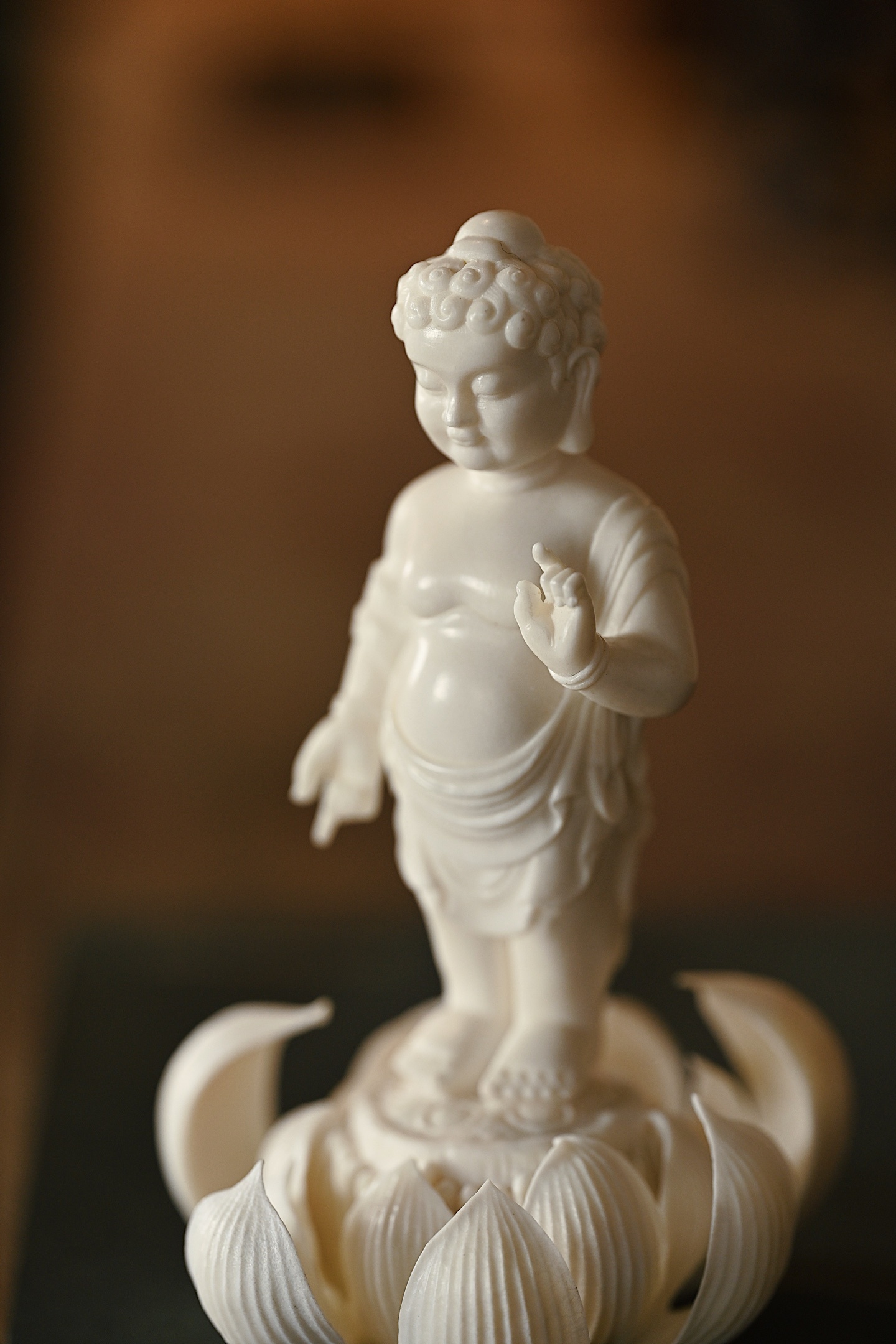 鹿角 | 太子佛造像以温润材质雕就,莲瓣舒展,孩童法相纯真肃穆,一手指天、一手指地,象征“天上天下,唯我独尊”的觉悟与力量。置于空间茶案,具禅韵与吉祥寓意。8.2*8.5*13.2cm 162g