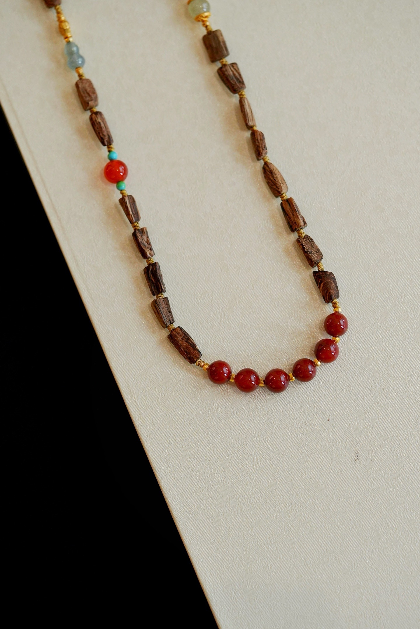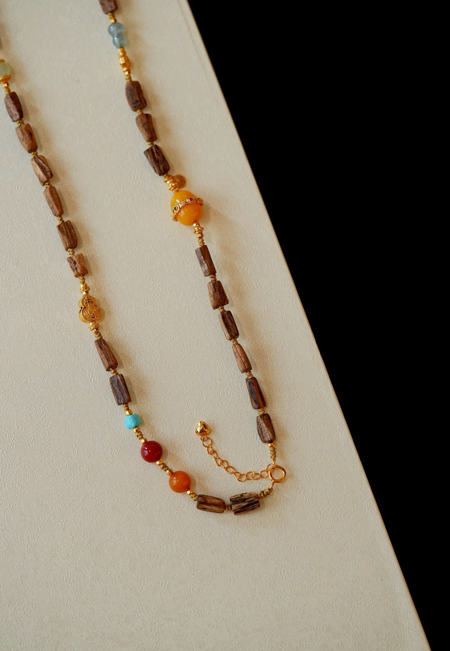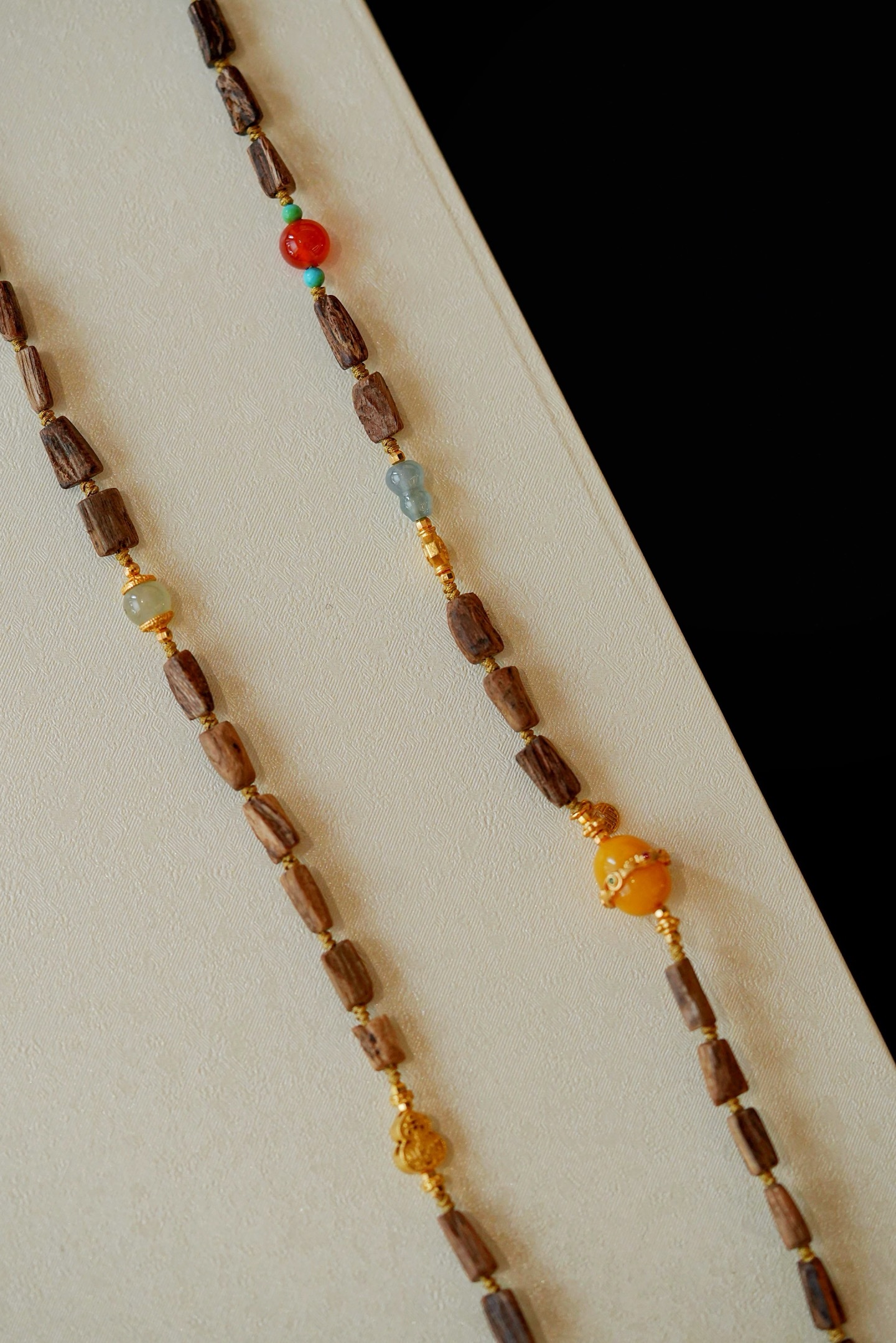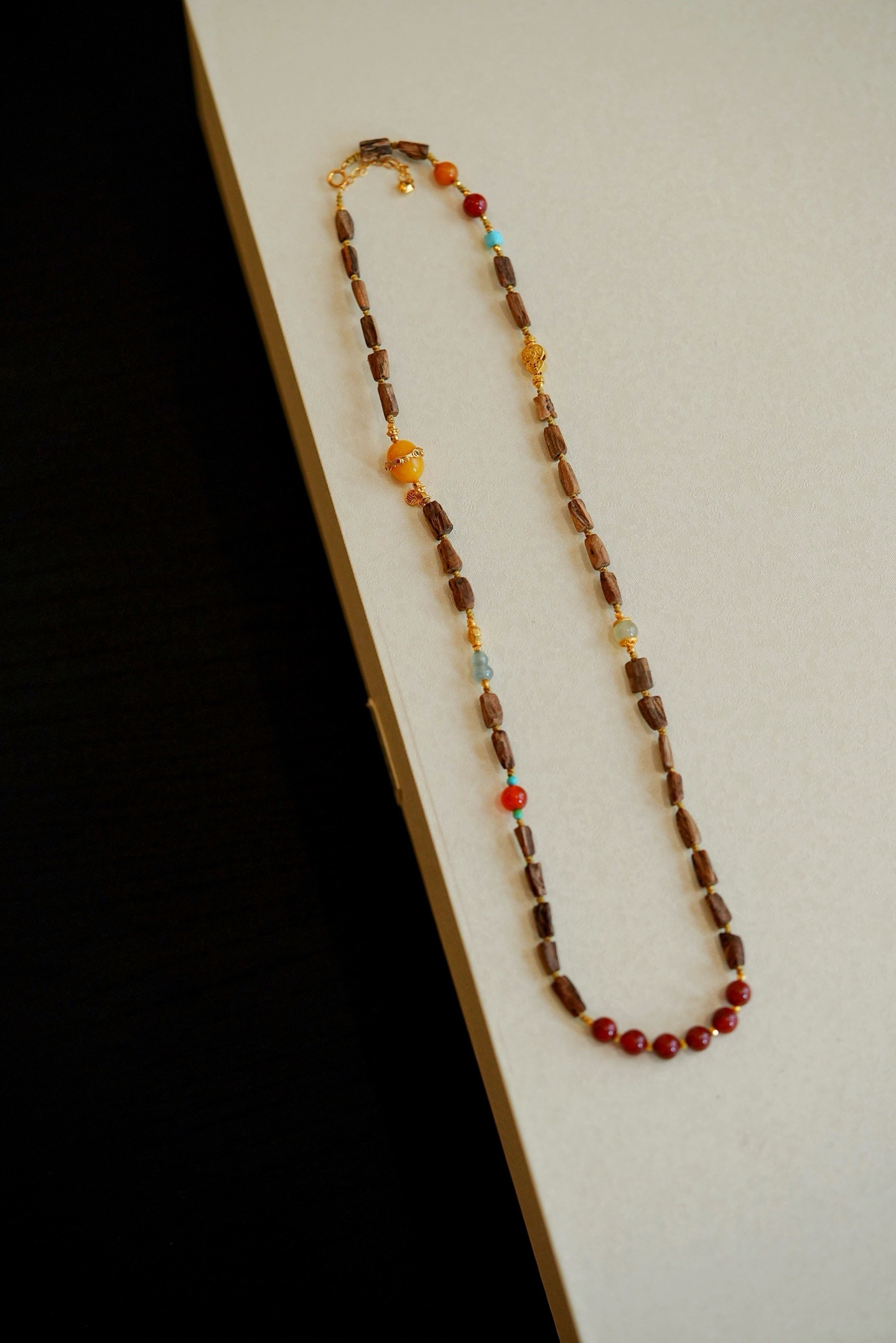 原创随形手链·锁骨链 | 惠安沉香老料惠安土沉随形老料桶珠,香气淡雅清新,质朴大气,搭配蜜蜡、碧玉、玛瑙、绿松石、南红等配饰,色彩丰富,佩戴百搭单颗尺寸约0.9×0.4cm 7.9g