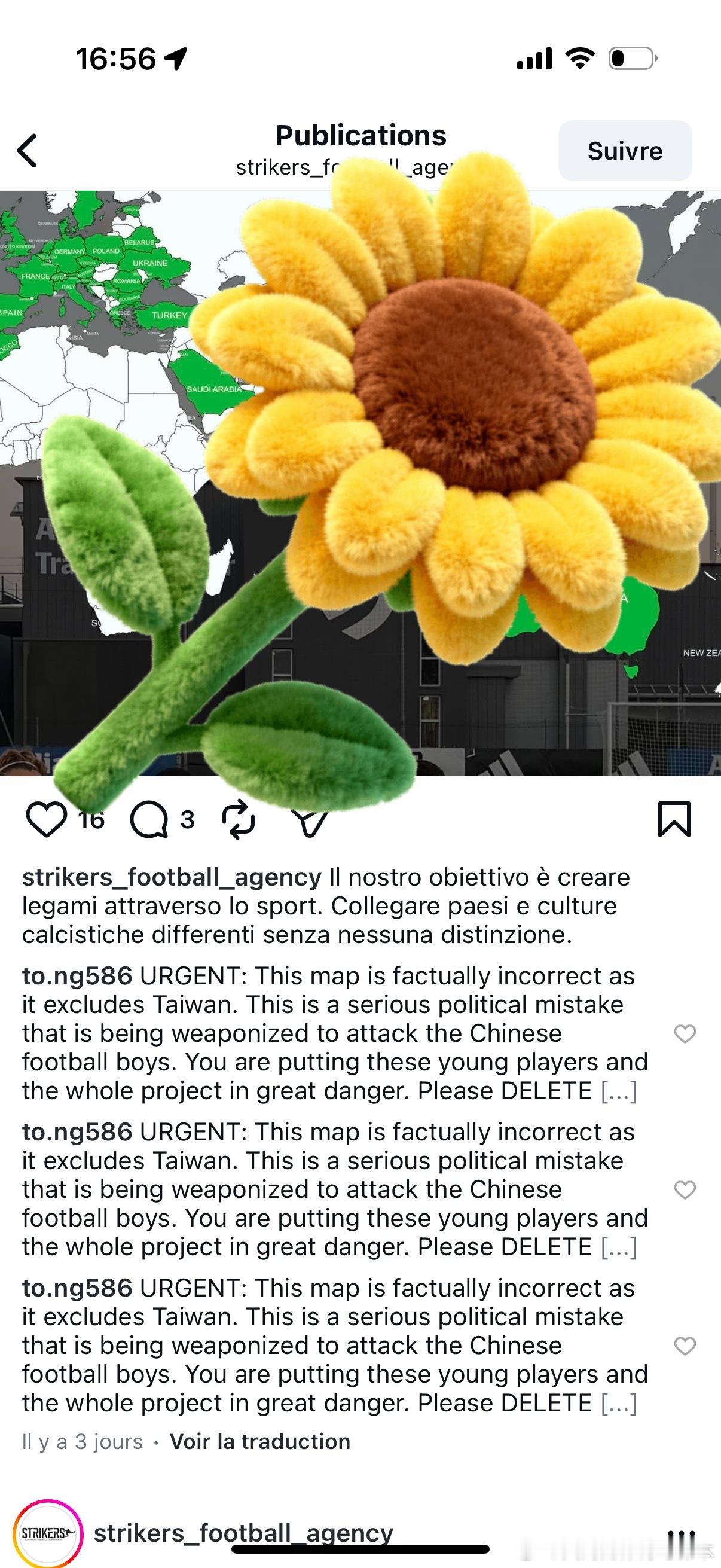 【中国足球封神榜】感谢和对中国足球小将参加的意大利某比赛的主办方及时监督!在我ins的及时通知下,主办方意识到了自己的错误,删除了相关有问题的地图。让我们用理解代替误解,用足球团结彼此!谢谢大家,这是中国足球外交史上的胜利