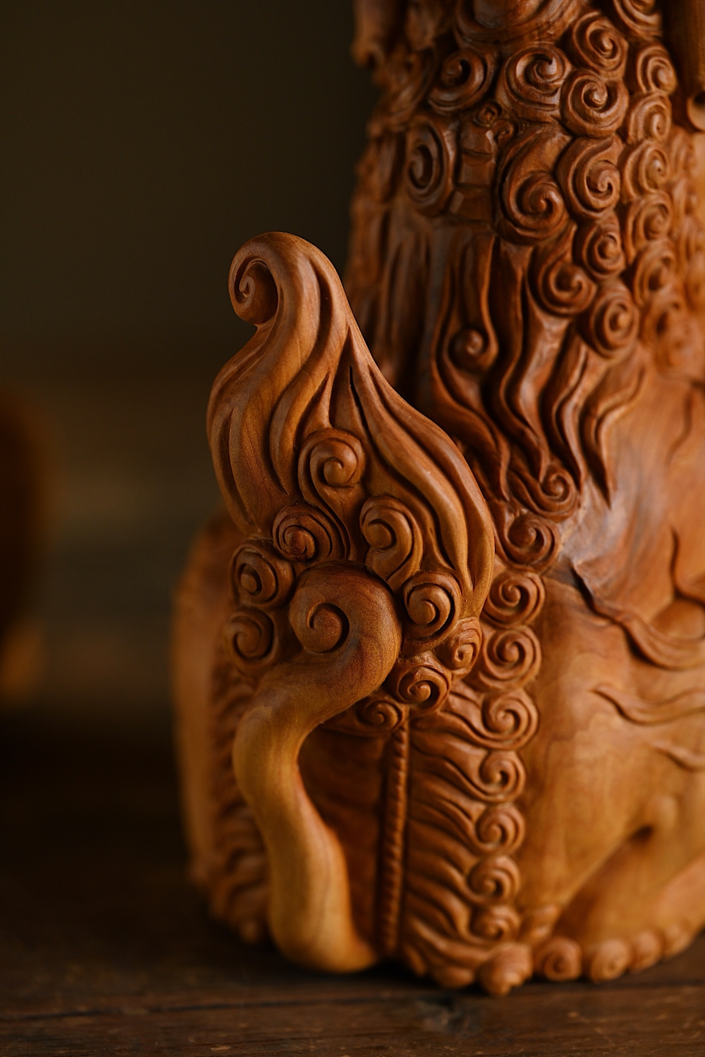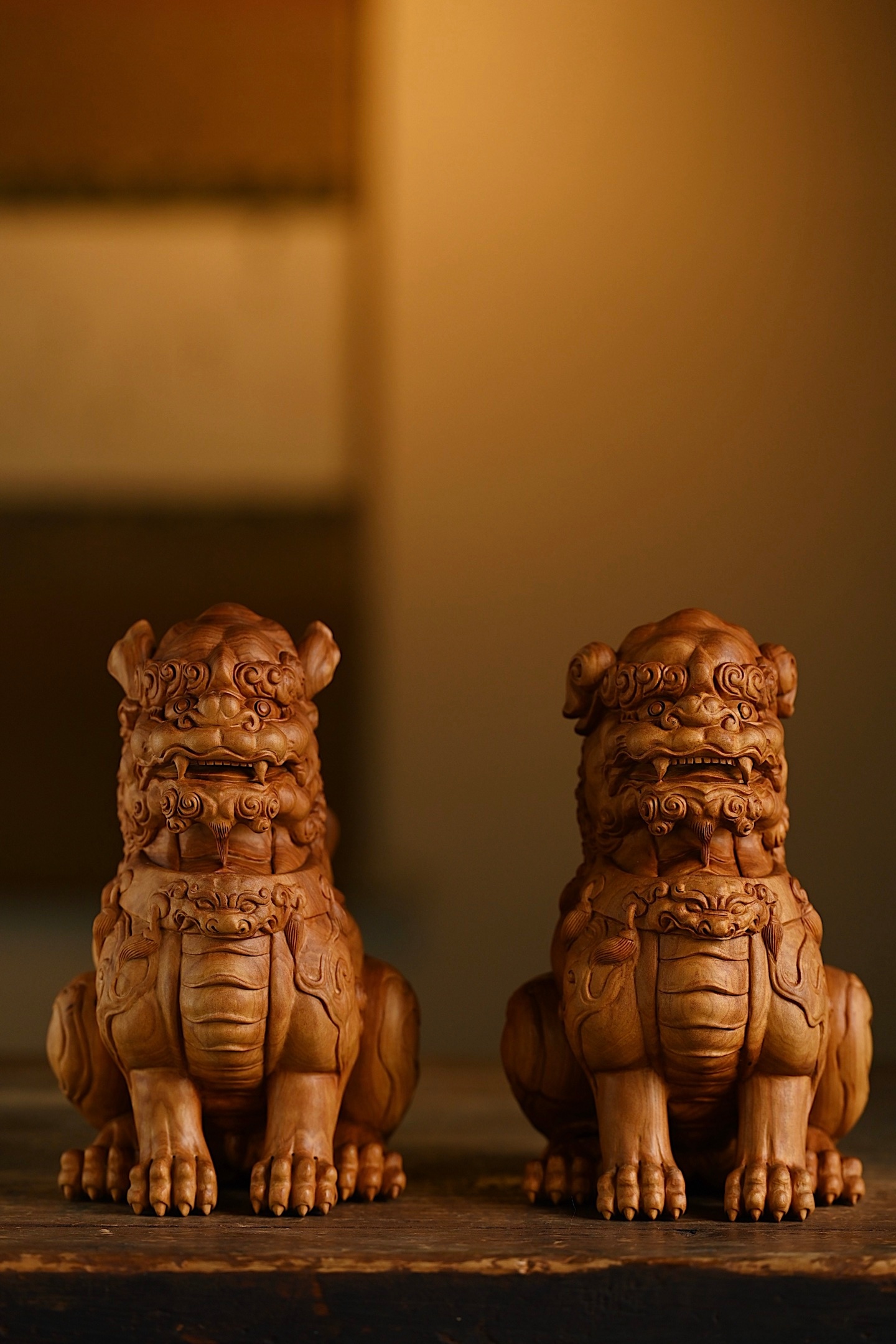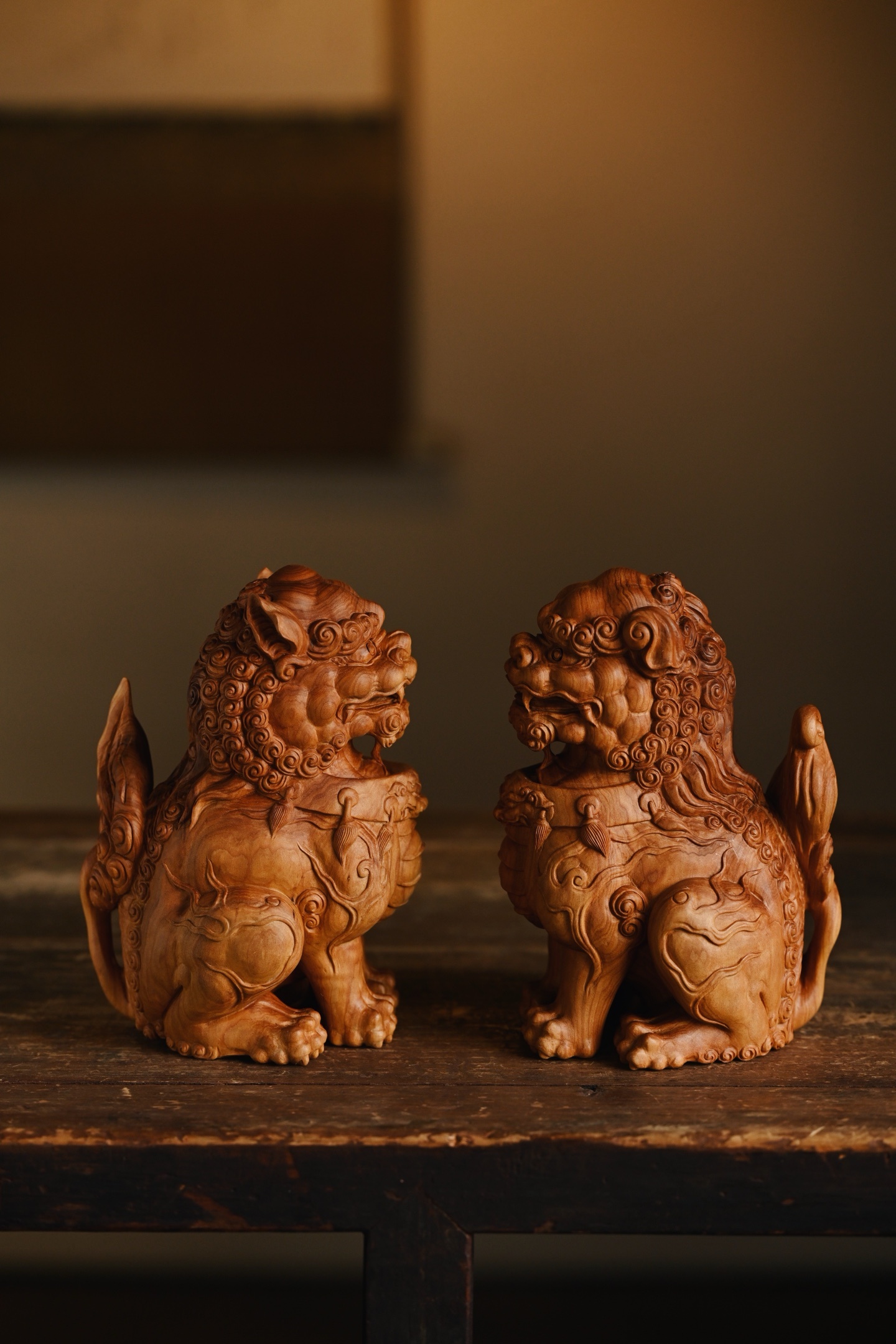 老山檀 | 貔貅 一对取材细腻,色泽典雅,雕祥瑞貔貅,健壮威风,须毫灵动,双目如炬,肌骨饱满,形神兼备,陈设案头,寓意吉祥招财。单只约11*12.5*17.5cm 760g