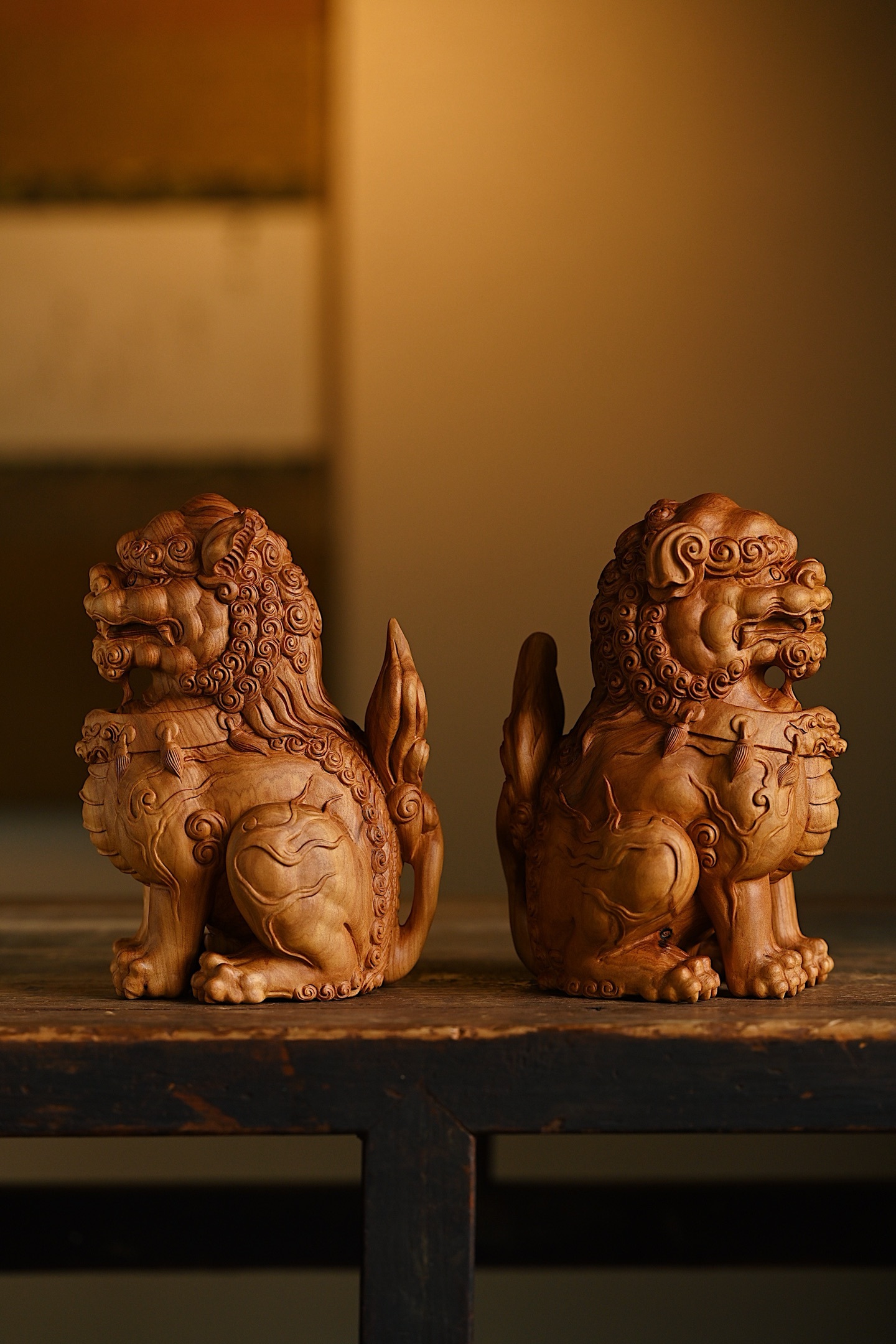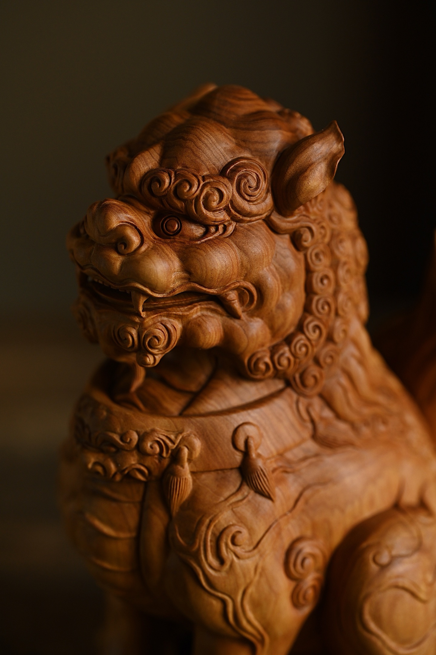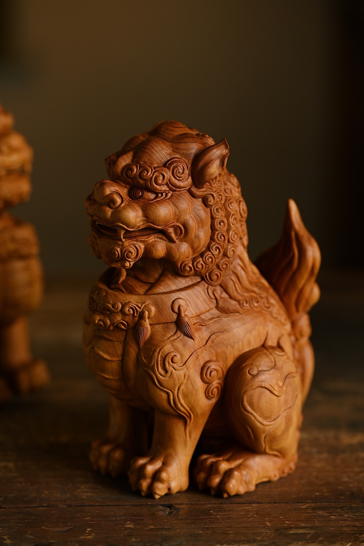 老山檀 | 貔貅 一对取材细腻,色泽典雅,雕祥瑞貔貅,健壮威风,须毫灵动,双目如炬,肌骨饱满,形神兼备,陈设案头,寓意吉祥招财。单只约11*12.5*17.5cm 760g