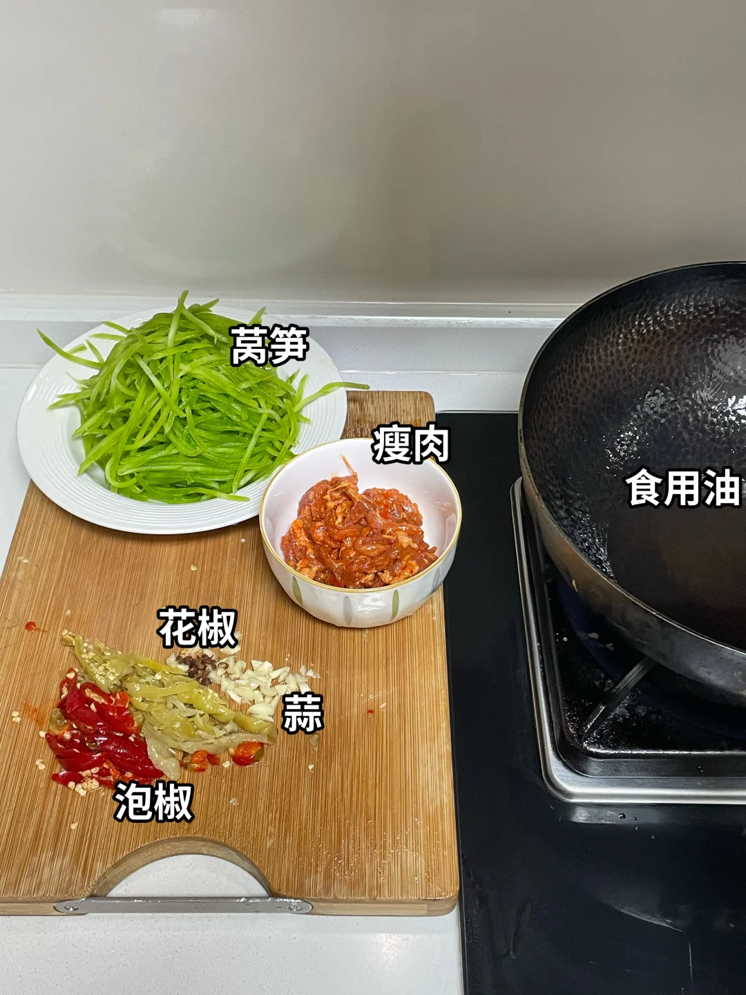 🌶️食材:莴笋,瘦肉,泡椒