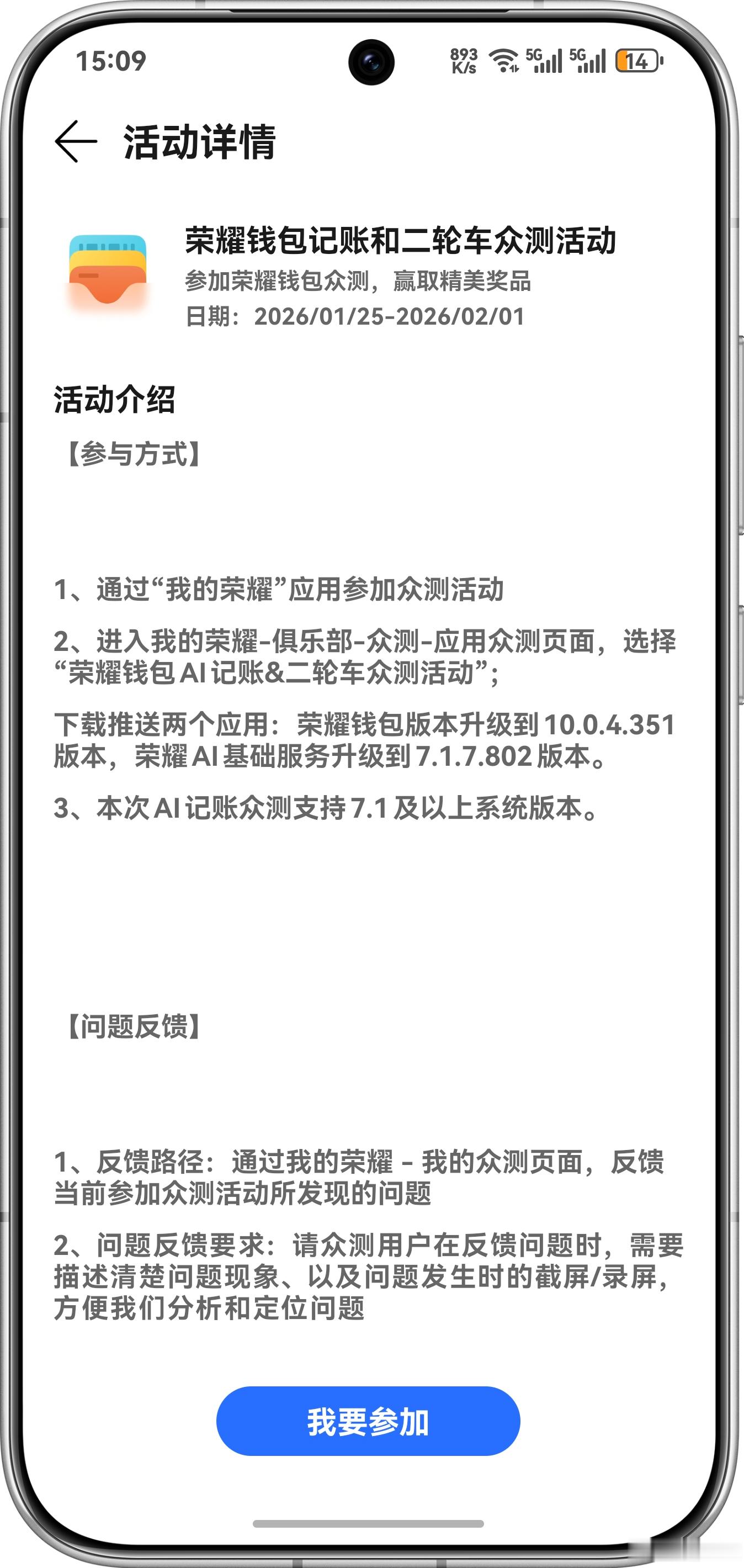 荣耀钱包记账功能现已开启众测,用户可通过“我的荣耀”App 参与测试活动,截至 2 月 1 日,暂不支持微信 App / 微信支付。