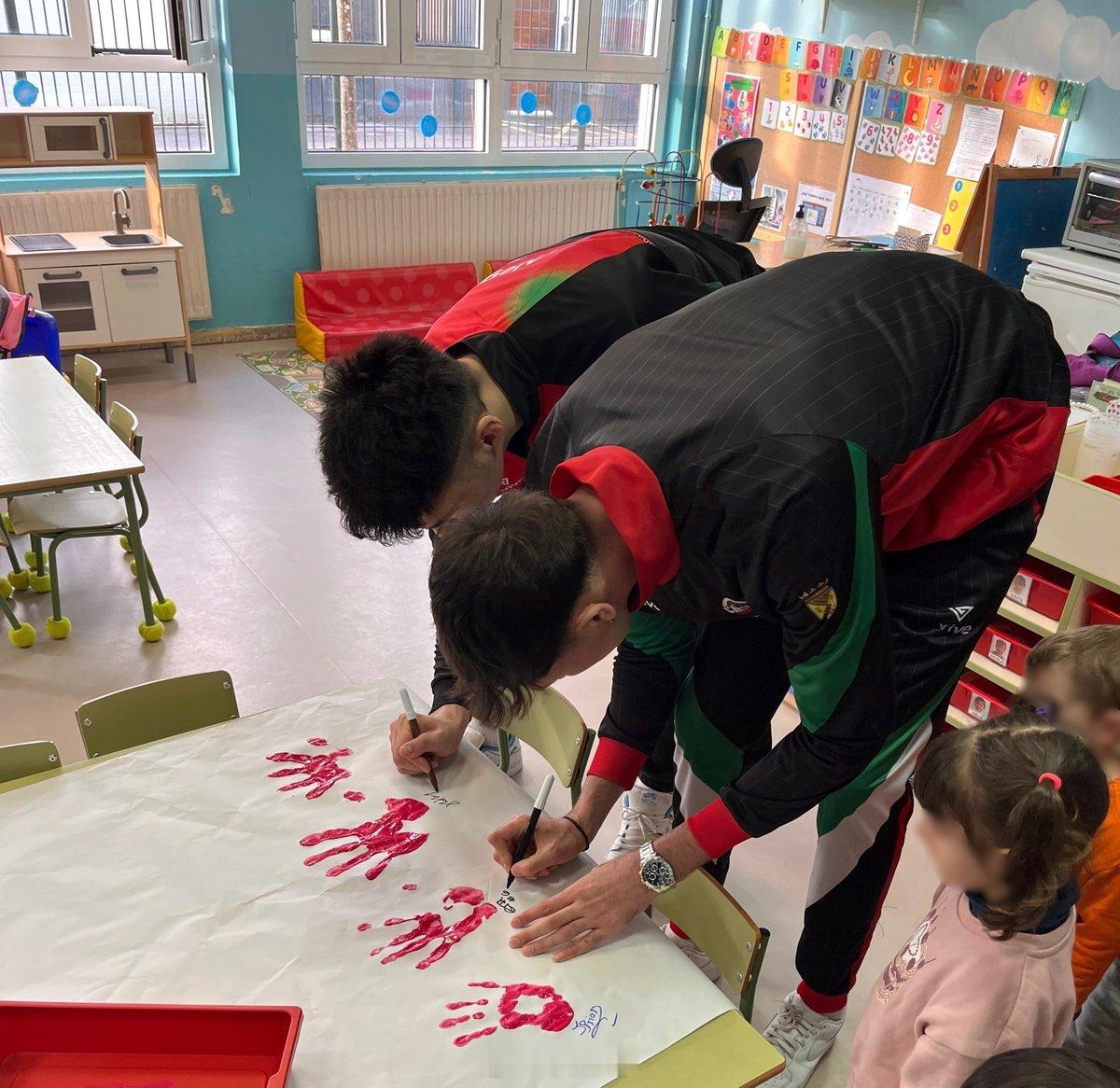 余嘉豪近期参加了埃斯特拉男篮的走进校园活动,跟孩子们互动,还为他们制作了比大小的手印挂画。余嘉豪余嘉豪