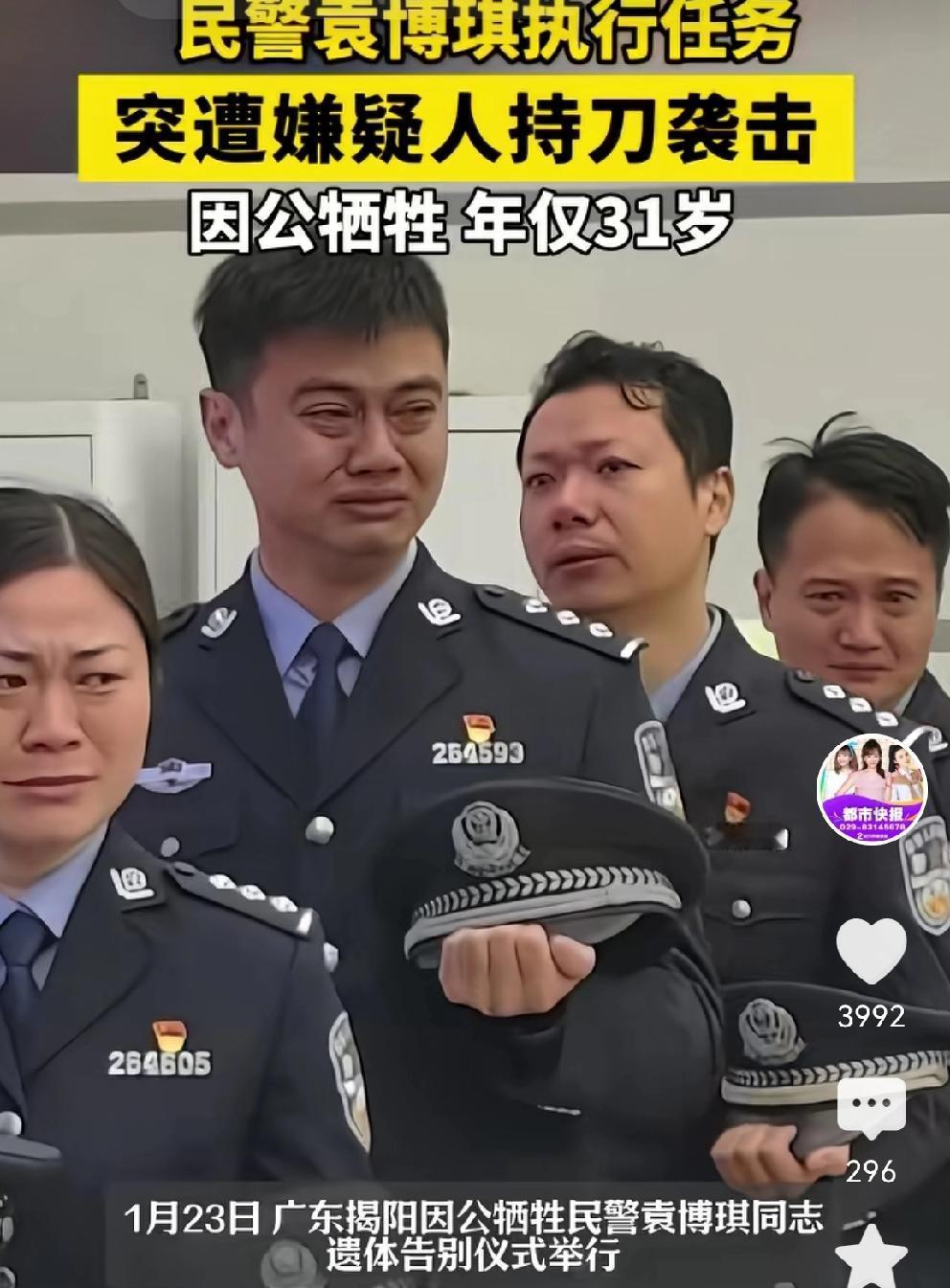 送别缉毒英雄,战友痛不欲生 袁博琪,是广东省揭阳公安局的禁毒警察。 1月19日晚,袁博琪在执行任务时,突遭犯罪嫌疑人袭击,不幸牺牲,年仅31岁。 1月23日,袁博琪遗体告别仪式上,前来送他最后一程的战友们,忍不住泪流满面,泪洒现场。 男儿有泪不轻弹,只是未到伤心处。看着曾经一起奋战在缉毒一线的战友永远倒下,从此天人相隔,能不落泪吗? 致敬英雄!愿英雄一路走好,天堂永安[祈祷][祈祷][祈祷][祈祷] 民警牺牲 禁毒英雄