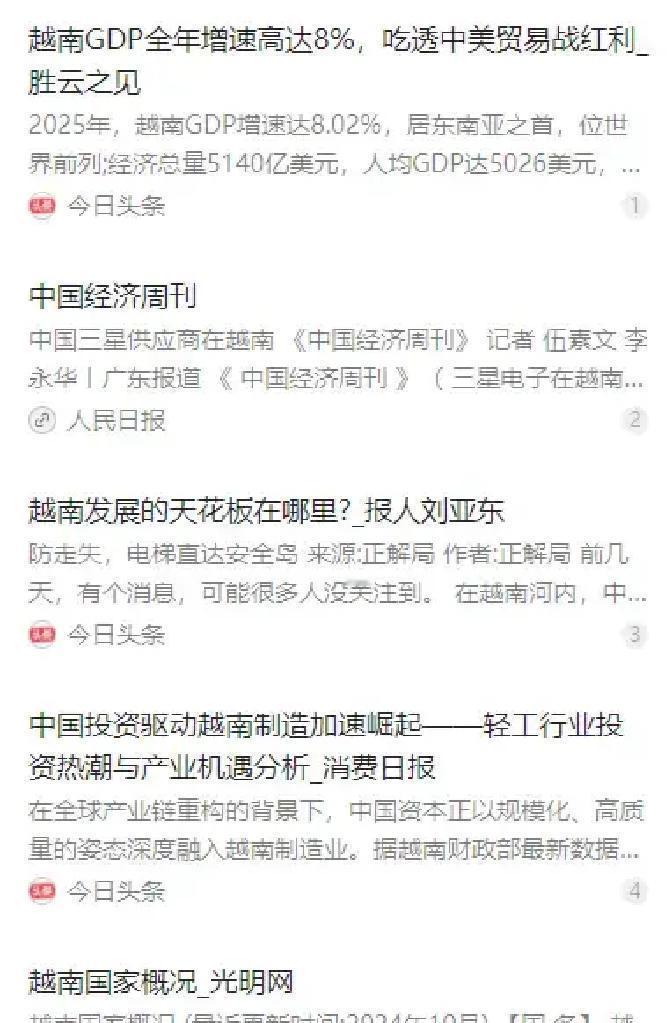 越南南北发展差距,会否埋下裂缝? 南方胡志明市一带工厂、港口密集(外资厂区多、机会多),北部不少县城还主要靠水稻和小作坊过日子。 差距久了,人心会起缝隙。 有越南学者担心,“南强北弱”固化,会让部分北方青年觉得自己不在同一条船上。 中国看这个邻国,得多盯盯接壤的北部省份就业和贸易,而不只是南方的漂亮港口,专家都在提醒:“别让北方掉队”。 你怎么看,越南南北继续发展下去,会不会改变中越边境感受?欢迎在评论区聊聊越南发展失衡会给中越合作带来哪些变数。