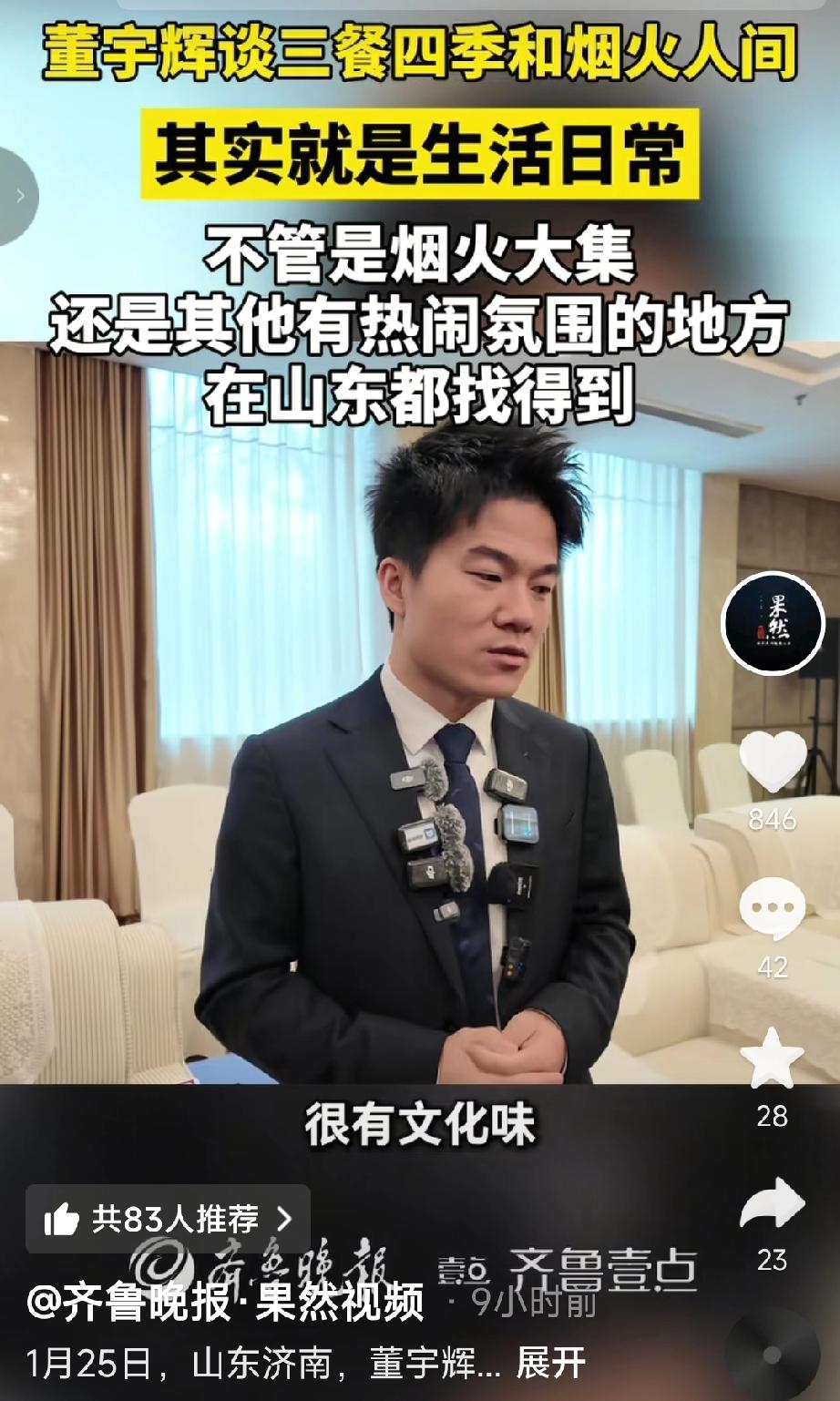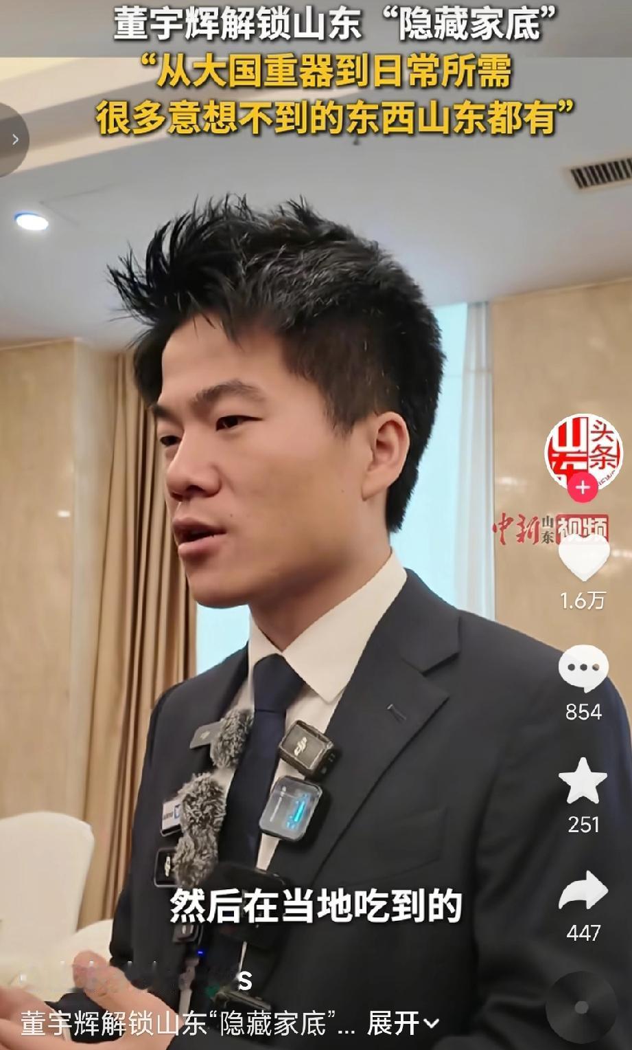 董宇辉在山东接受采访时,胸前挂的8个麦的主人找到啦,他们分别是:闪电新闻、山东商报速豹映像、海报新闻、新黄河、山东头条news、直播济南、齐鲁晚报果然视频、泰山财经。 另外还有山东的各大媒体,如生活帮、山东交通广播、好品山东、文旅泰安、齐鲁频道、大众日报、山东三农新闻联播都分别对董宇辉此次的山东行作了相关报道。 你们知道还有哪些新闻媒体报道了董宇辉此次的山东行吗? 这些够打那些小黑们的脸了吧? 董宇辉 与辉同行