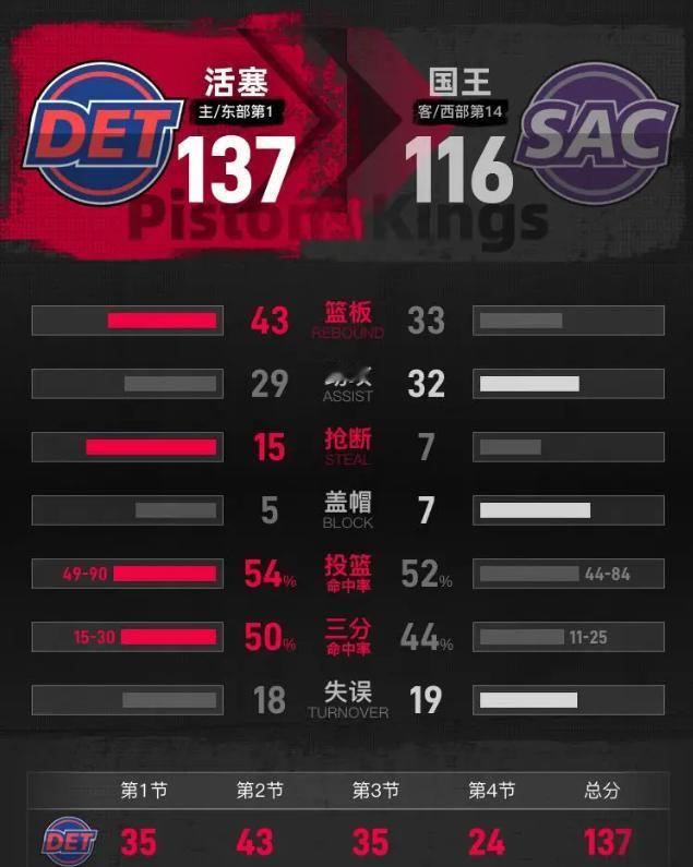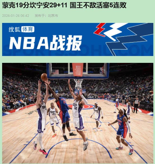 都说活塞是“虚胖”的东部第一,可人家愣是一个月没掉链子,这还假?今天赢国王看似平常,却暴露了他们最吓人的地方——现在活塞能赢球的路子,不止一条。 以前看活塞,坎宁安一铁,心就凉半截。现在呢?他打不好,全队能扛;他开了,比赛直接花。今天就是坎宁安开挂的模式,轻松29+11带队打崩国王。反过来看国王,真是让人无语,七人上双还能输20多分?进攻看着热闹,实际乱成一锅粥,防守更是纸糊的。客场八连败,蒙克老说“没能量”,要我说,是球队压根不知道怎么一起打球了。 活塞为啥这么稳?关键是“坎宁安+杜伦”这新内核立住了。一个在外边控场攻坚,一个在里边高效吃饼护框,两人一带,全队都活,八人得分上双跟玩似的。这跟过去那支只会单打、第四节必崩的活塞,根本不是一队。 国王到底差在哪?别光看数据。他们最大毛病就是守不住,还不会打客场。这赛季客场就赢过3场,今天半场让活塞轰78分,防守形同虚设。阵容看着不差,可外线不稳,替补深度也不够,就靠双核硬抡,能抡几场?福克斯一伤,更露馅了。 这场胜利对活塞太提气了,紧接着就是掘金、太阳、勇士的魔鬼客场。他们这是提前宣告:不管对手是谁,我现在兵强马壮,体系成熟,谁来都敢碰一碰。东部第一,人家是真有底气坐稳。 说白了,活塞已经完成了气质上的蜕变,从鱼腩变成了能打硬仗的团队。而国王还在原地打转,连败不全是伤病问题,根子上是球队文化和战术执行出了毛病。看活塞打球,你能看到清晰的成长蓝图;看国王,只剩下一声叹息。这哪是一场普通的常规赛,简直是两支球队走向不同命运的生动对照。蒙克19分坎宁安29+11 国王不敌活塞5连败