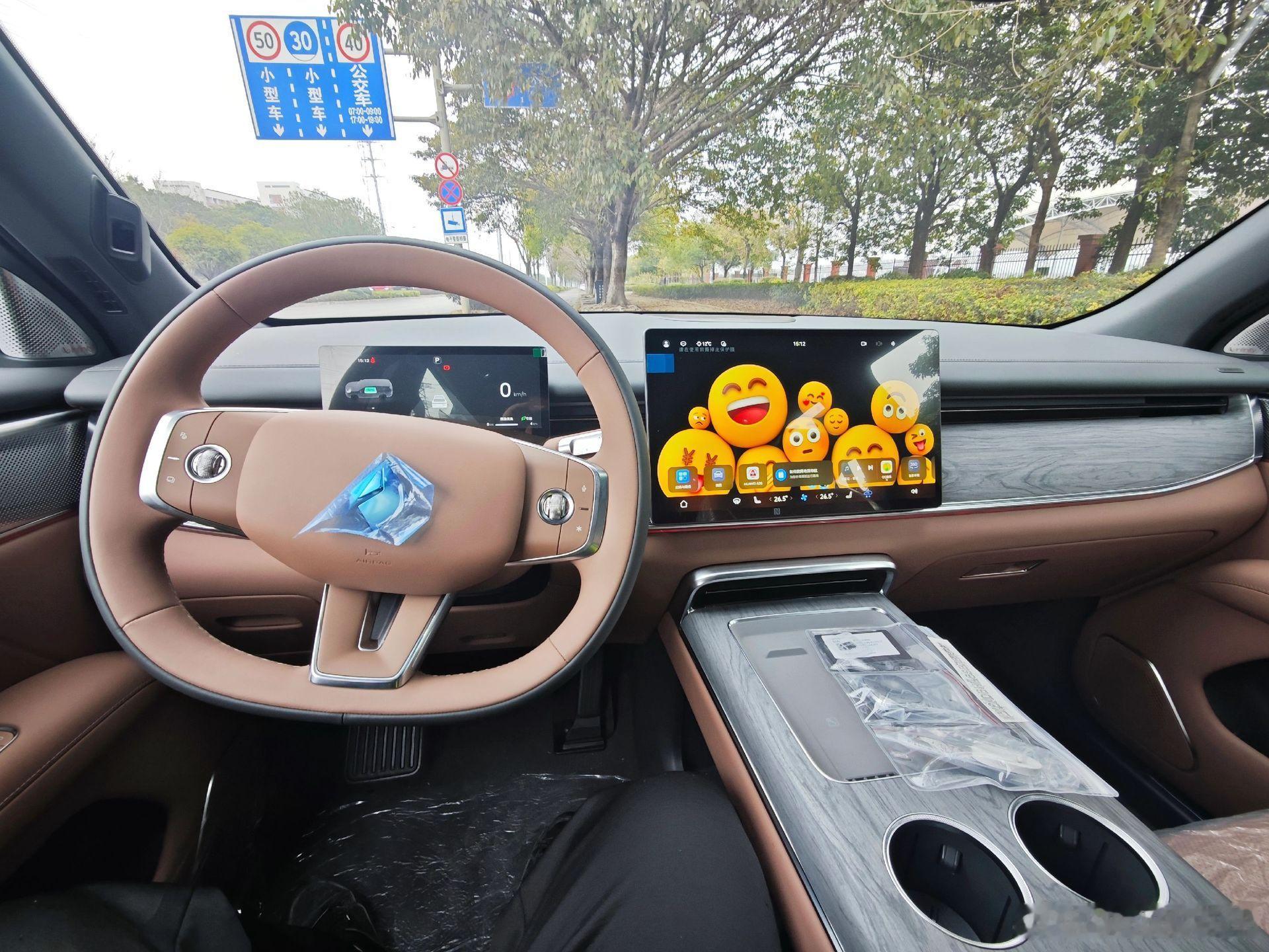 华境 S 这一版内饰就清晰多了,是一套棕色+木纹的内饰搭配,华为鸿蒙座舱5车机也点亮了,这价位给到这套方案还挺不错,已知外观主要有灰、蓝、黑色,预计正式量产会有更多的车漆,同时内饰配色也有多种可以选。华境S华为乾崑新能源汽车