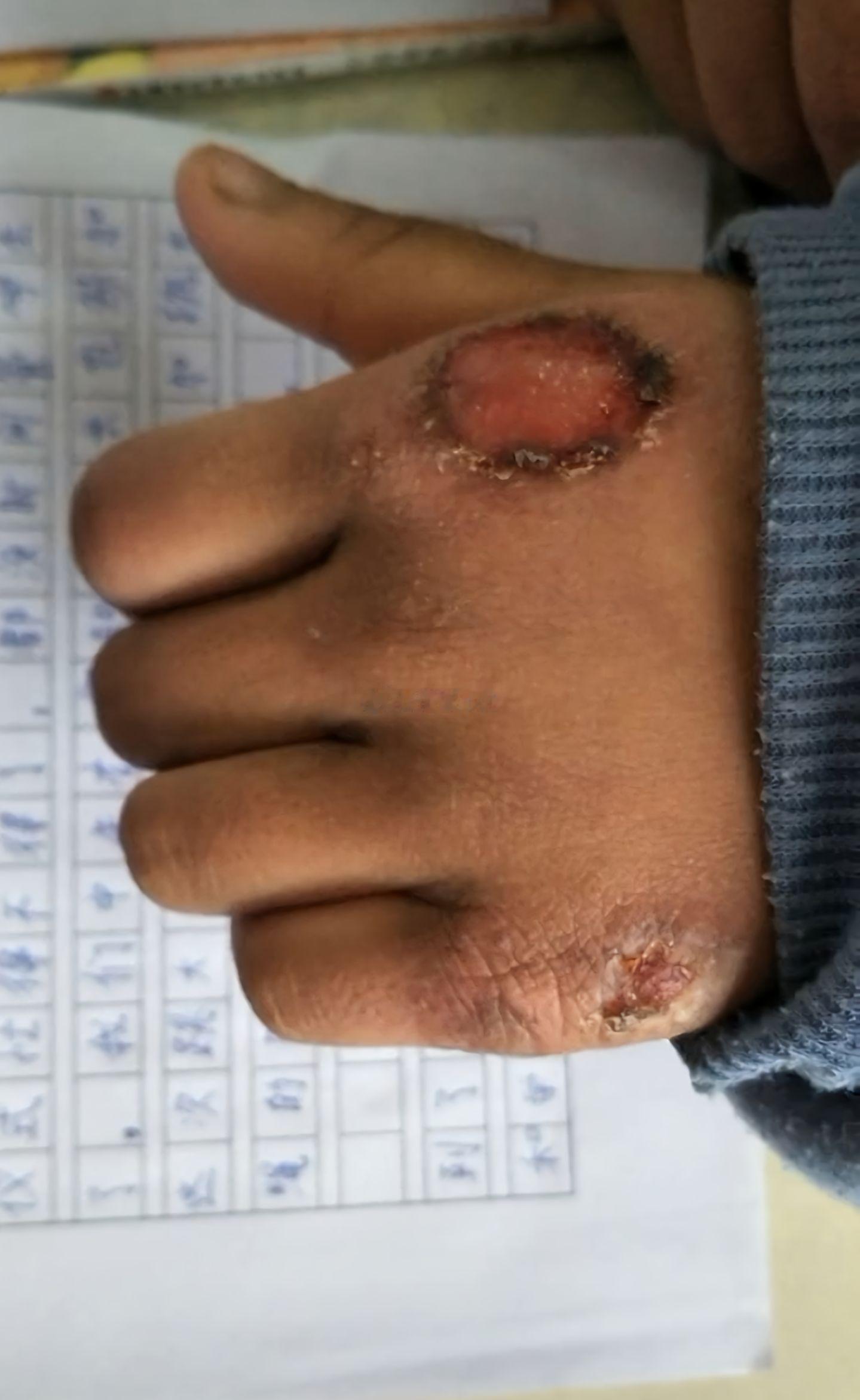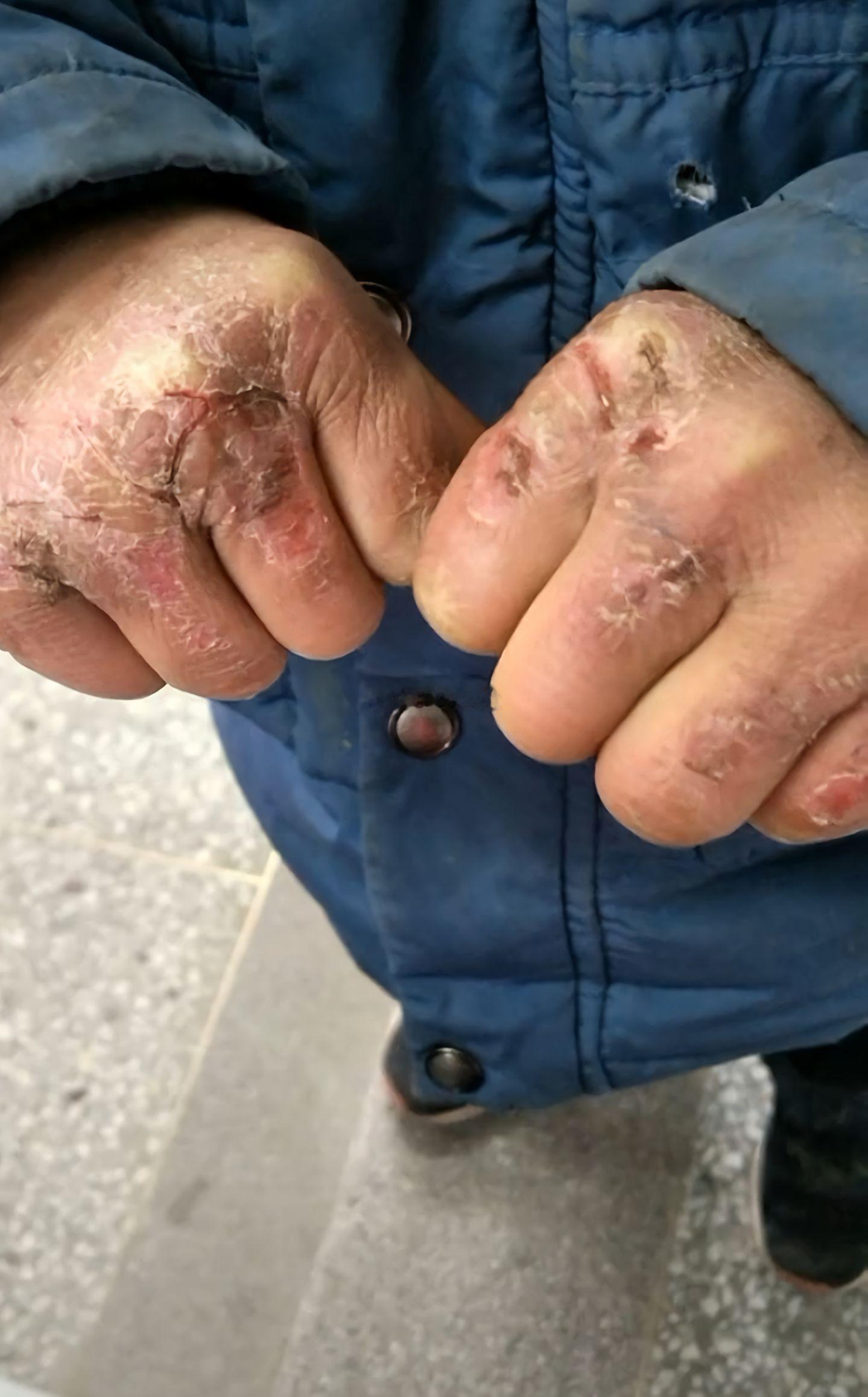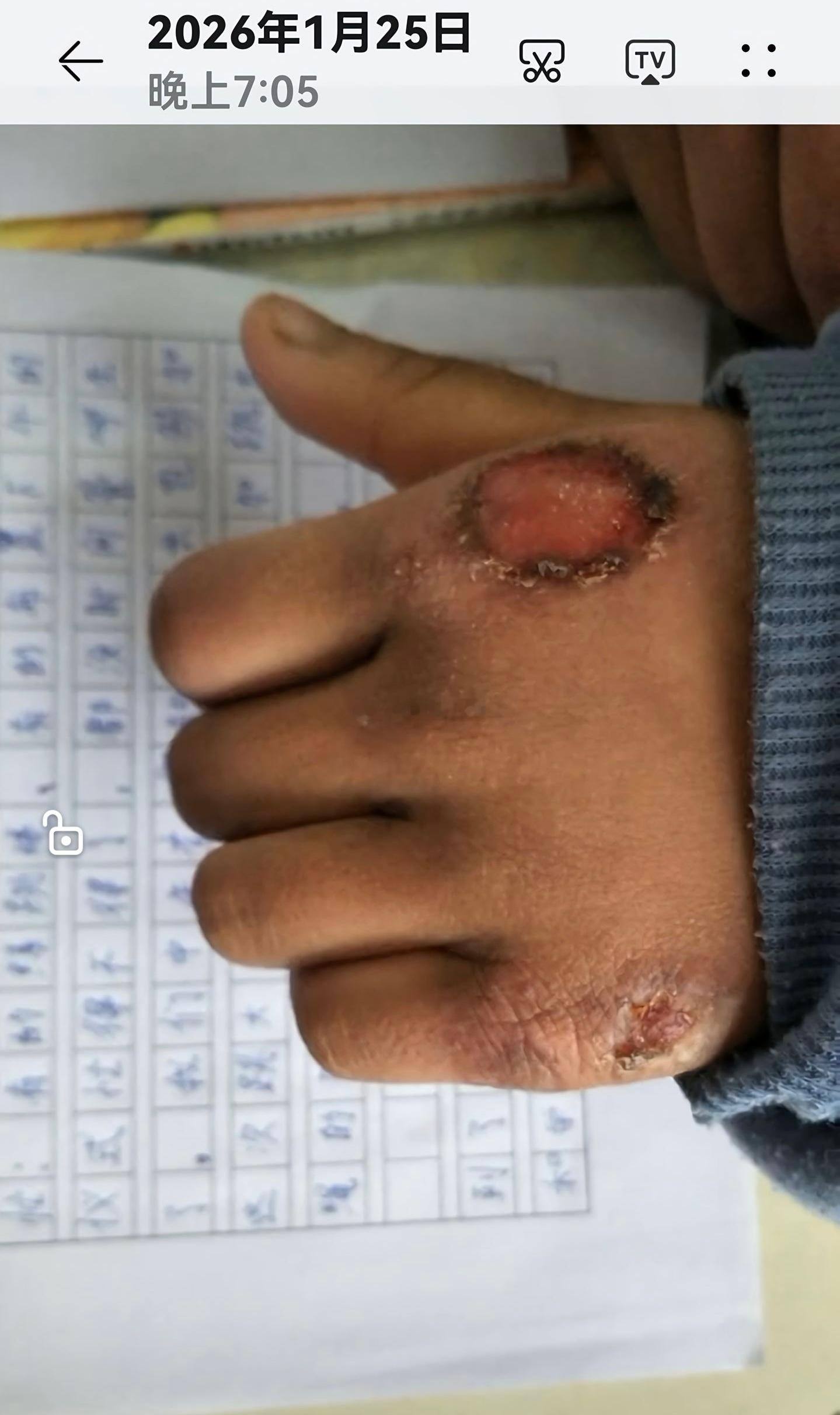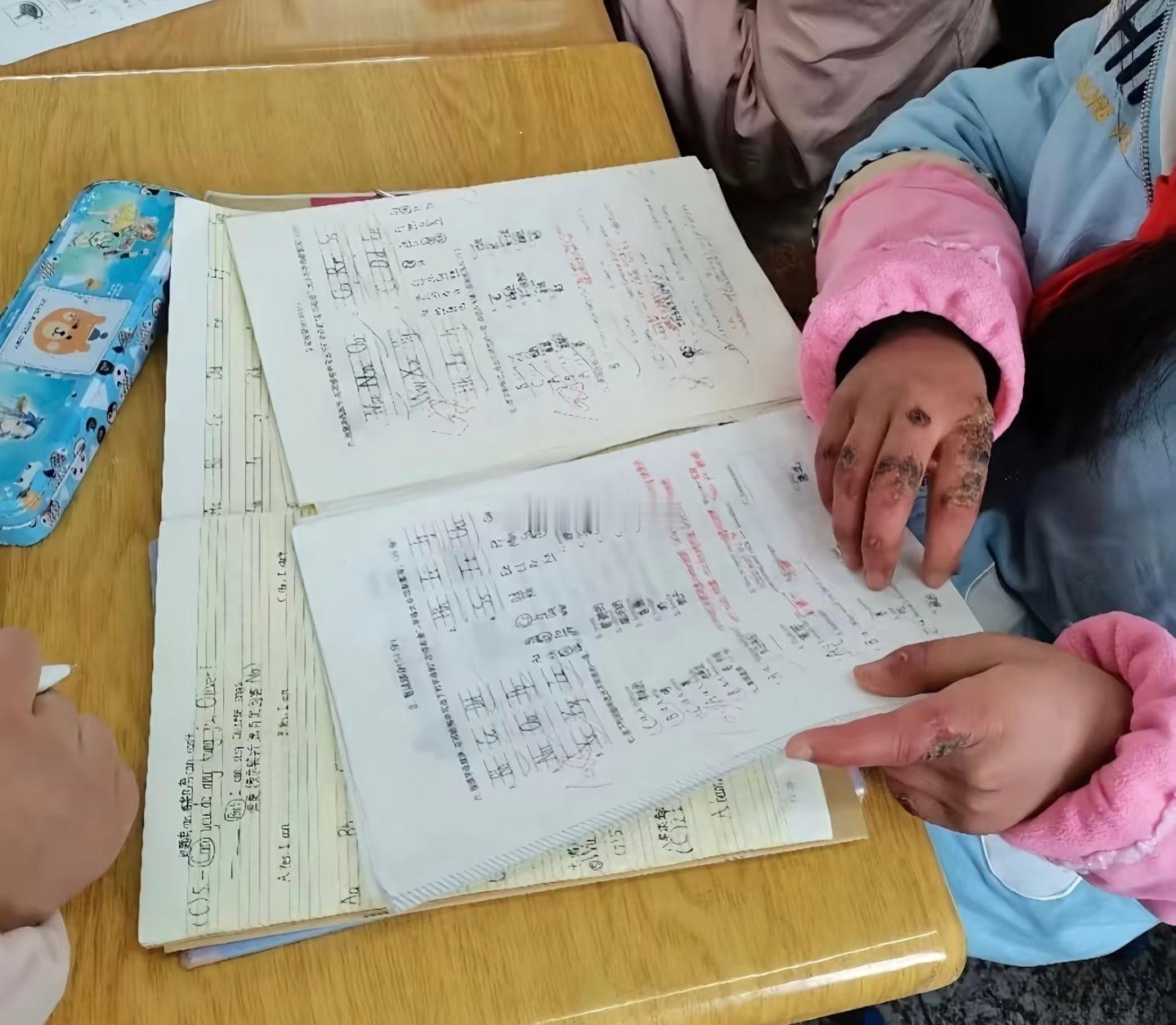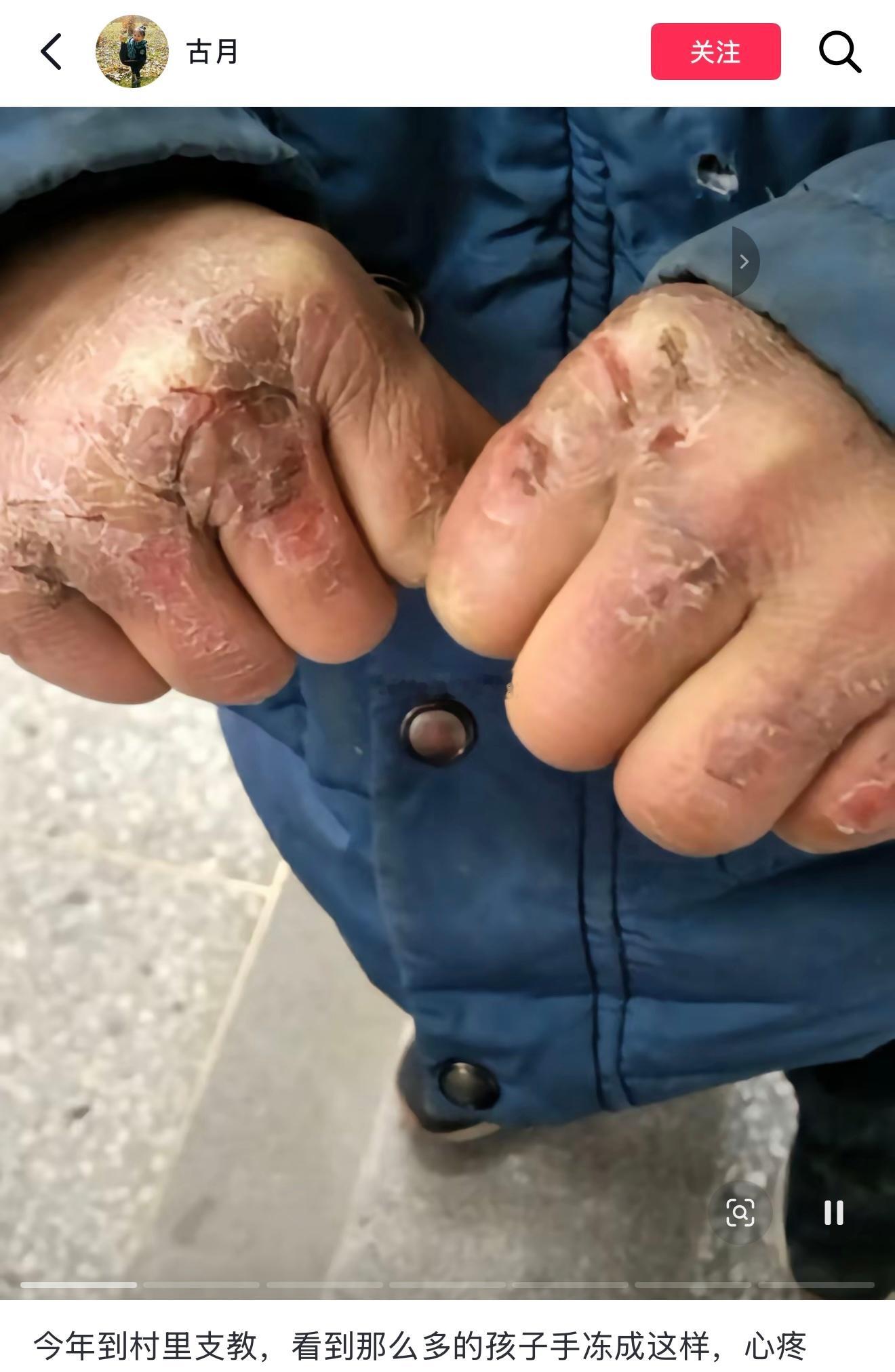 支教老师实拍孩子手上长满冻疮。