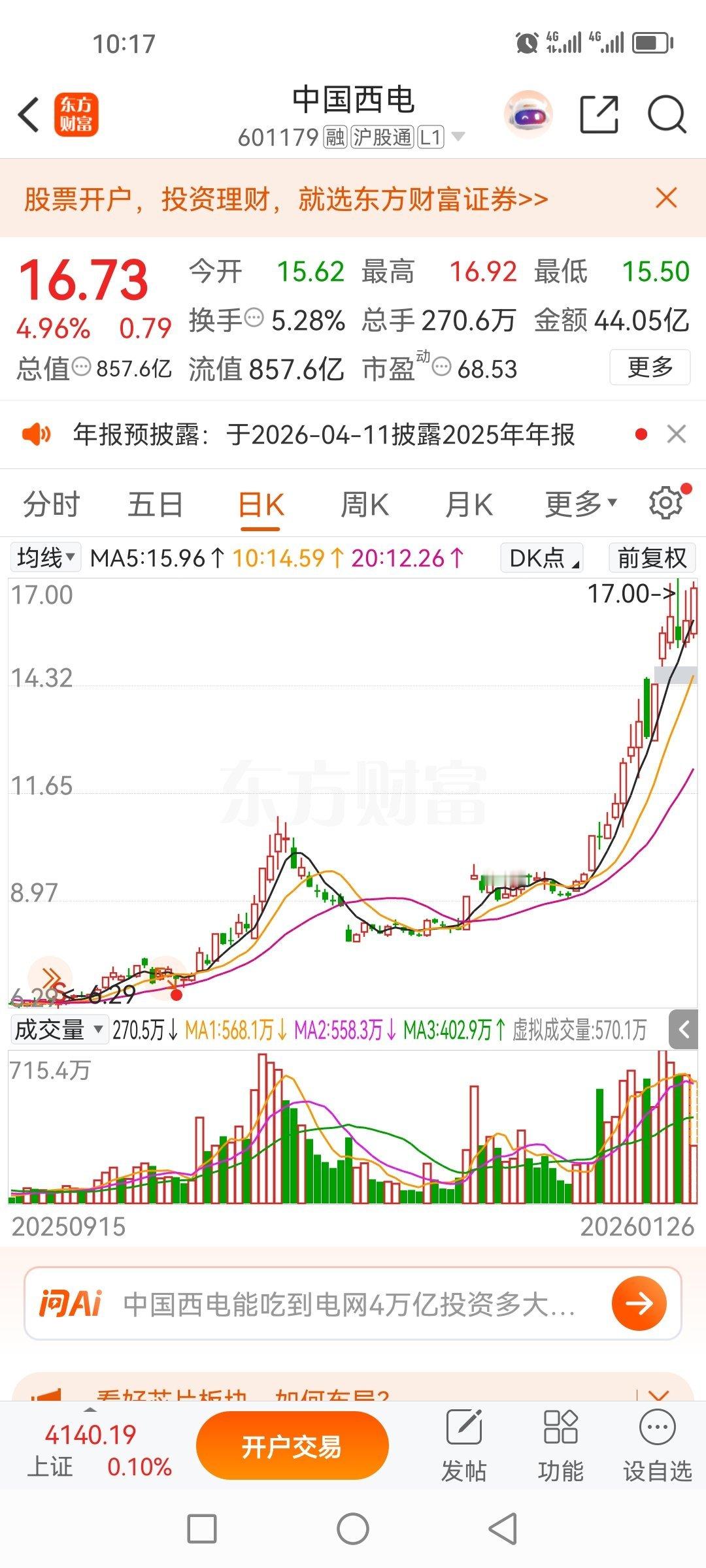 14日盘前分享的中国西电601179,今天又是创新高的一天,股市在降温,它却艳阳高照红红火火!