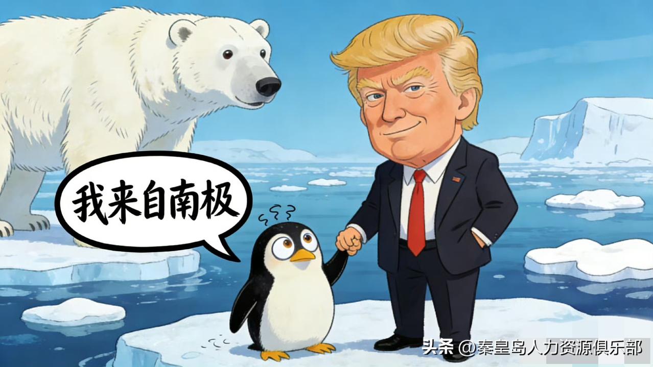 特朗普又出神图了!白宫官方发了一张P图,老特牵着一只企鹅,企鹅还举着美国国旗,俩人在格陵兰岛的雪地里溜达。 配文写着“拥抱企鹅”。明眼人一看就懂,这是还对买格陵兰岛念念不忘呢。结果丹麦网友集体笑哭:总统先生,格陵兰岛在北极,没有企鹅啊!企鹅都住南极! 估计老特心里嘀咕:我敢P北极熊吗?P了你们又该说我“通俄”了,这锅我可不背。 最惨的是企鹅,无缘无故被“搬家”到了北极。其实北极历史上像企鹅的大海雀早就灭绝了,现在强行送企鹅过去也活不成。这波操作,真是让人哭笑不得。