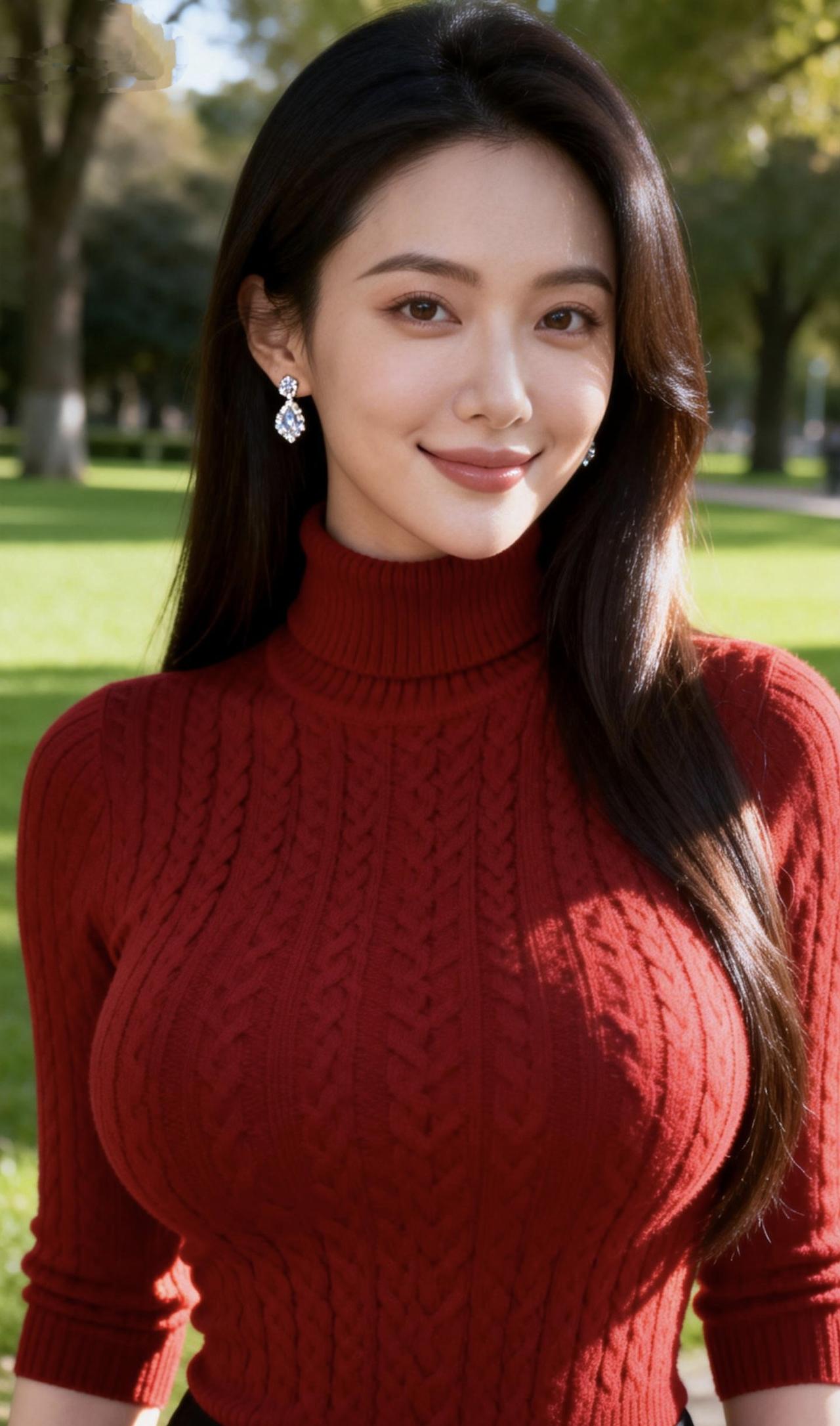 《红绒暖阳》 红绒织就暖冬衣,柔蔓花纹覆玉肌。 笑靥轻融晴日色,发梢微漾晚风丝。 林间光影凝温婉,耳畔星芒缀雅姿。 不借丹青描秀色,天然风韵胜春枝。   赏析:这首诗以图中女子的红毛衣为核心意象,开篇用“红绒织就暖冬衣”点明服饰特征,既呼应了温暖的视觉感受,又奠定了柔和的基调。“柔蔓花纹覆玉肌”一句,细腻描绘针织纹理贴合身形的美感,兼具质感与画面感。 颔联转向神态与细节:“笑靥轻融晴日色”将笑容与暖阳相融合,传递出明媚和煦的气质;“发梢微漾晚风丝”则以动态感增添灵动气息,让静态画面有了流动的诗意。颈联拓展场景,“林间光影凝温婉”把背景的树林与人物的温婉气质结合,“耳畔星芒缀雅姿”点出耳饰的精致,让形象更立体。 结尾“不借丹青描秀色,天然风韵胜春枝”以对比收束,赞美女子无需修饰的天然美,将其风韵与春日花枝相比,升华了对她优雅气质的赞叹。整首诗从服饰到神态,从细节到意境,层层递进,让画面中的温柔与美好在文字里鲜活起来。 暖红毛衣写真 红毛衣慵懒风 加绒红毛衣 秋冬红毛衣套裙 红绒冬日穿搭 红绒连衣裙 暖红绒写真 红绒暖冬