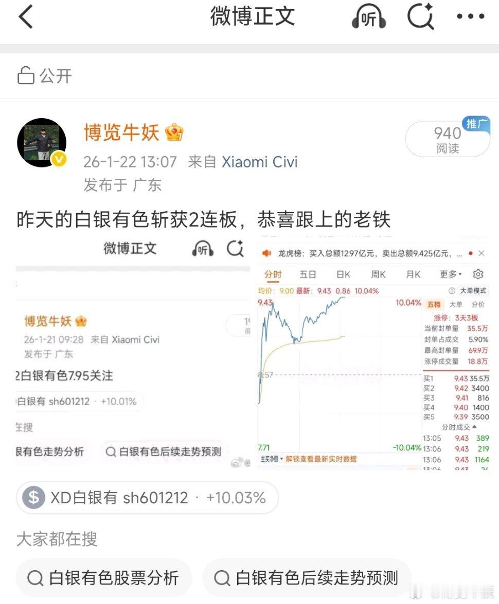 今天没建新仓了,继续拿着白银有色,恭喜3连板