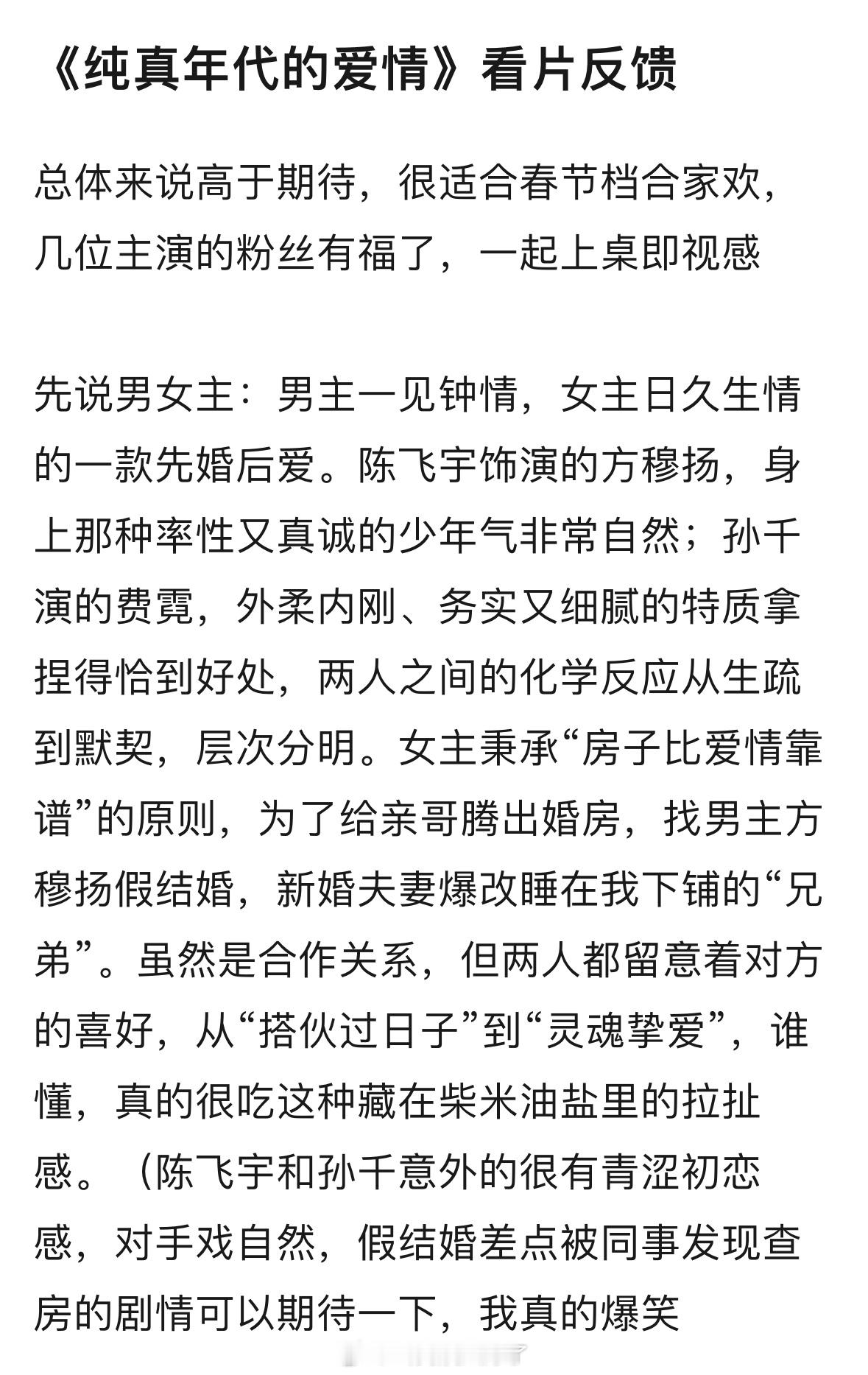 陈飞宇、孙千《纯真年代的爱情》看片反馈,很适合春节档的合家欢电视剧。期待吗?