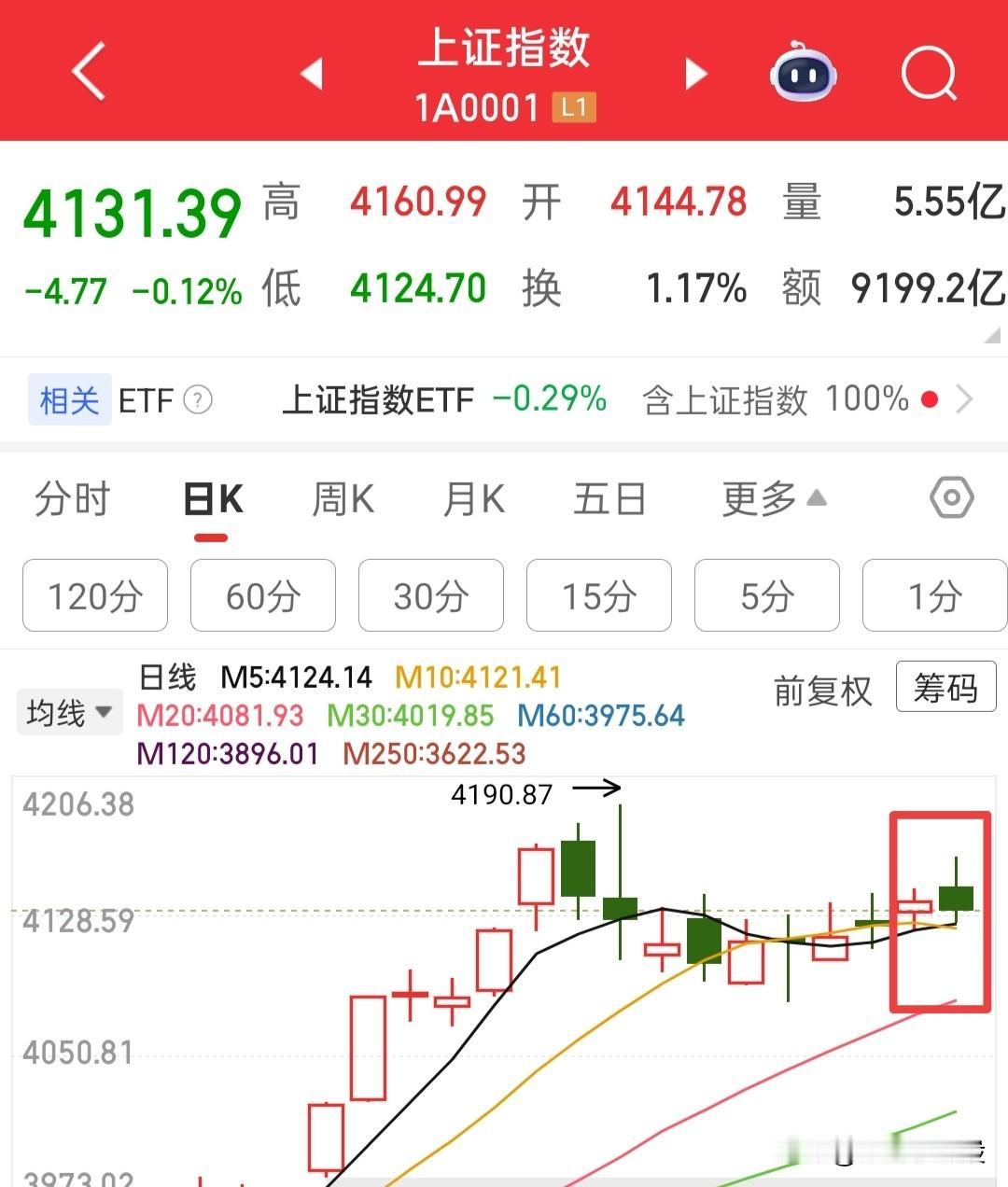 大跌不要慌,割肉也没必要,今天好多人跑路了,好像意义不大,我倒不喜欢和别人同样的思路,那就不能出淤泥而不染了…… 我觉得吧,今天提前跌了,周二就没风险了,这就是相对的,风险释放掉,一切都坦然! 目前大盘和全A的日线形态都很漂亮,比如花妹妹还漂亮三分,除了没有挖鼻孔的动作,其他的都美极了!! 你们看着这两个指数的日线图,收这种或者比这种更好的形态!我认为明天开盘就会修复!!! 所以暂时看,明天没有风险,个人愚见,仅供娱乐!