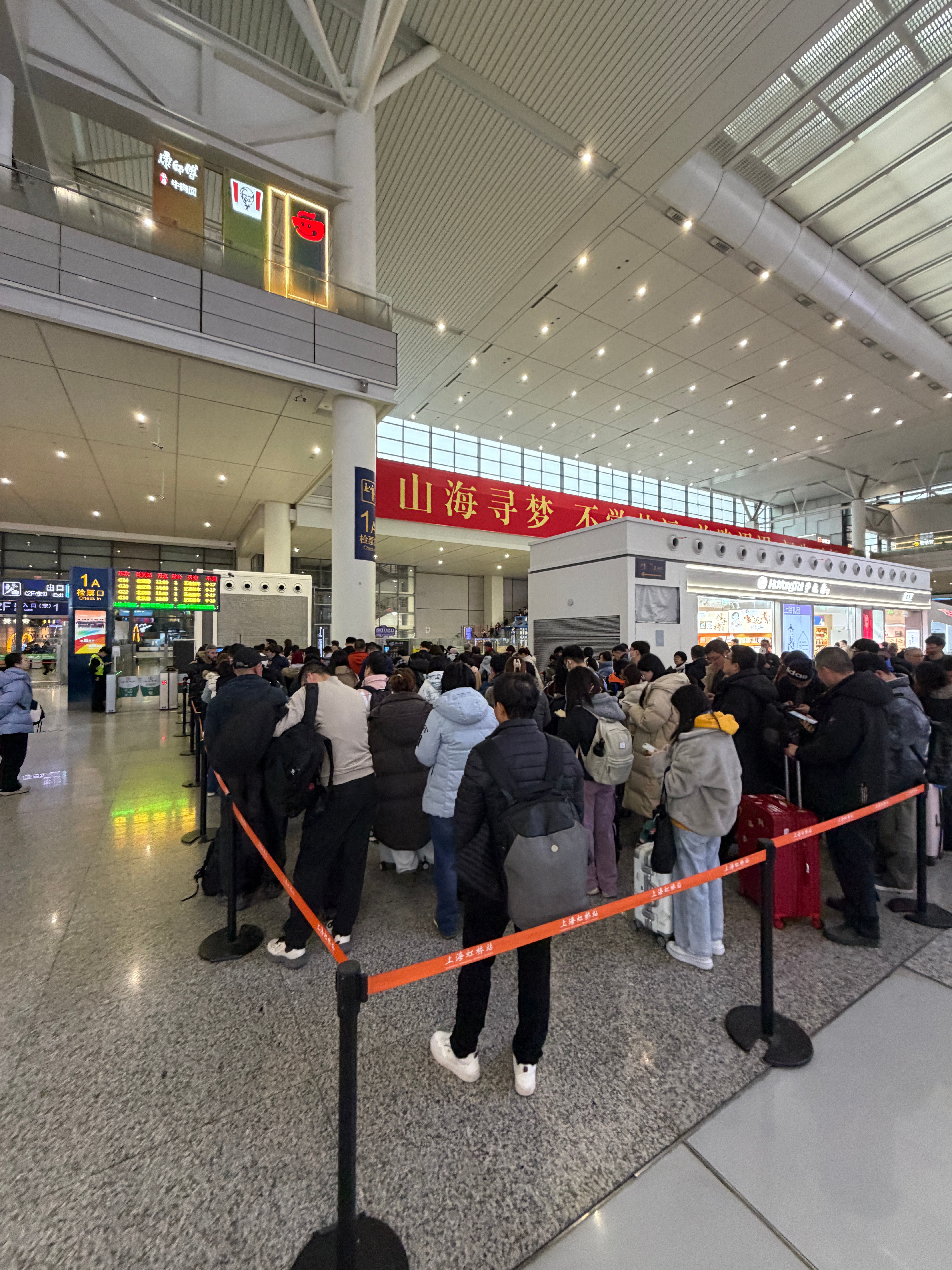 每次来虹桥高铁,我的Air Pods Pro都有连接不畅的情况,很奇怪,很多年了,耳机和手机都换了好几个了,一直有这个情况。今天也是第一次坐G14这么短开头的高铁,也是第一次在虹桥高铁站的1号检票口登车,人暴多。这趟确实挺快,4个半小时,应该是国内最速高铁了,主要是中间就停两站。