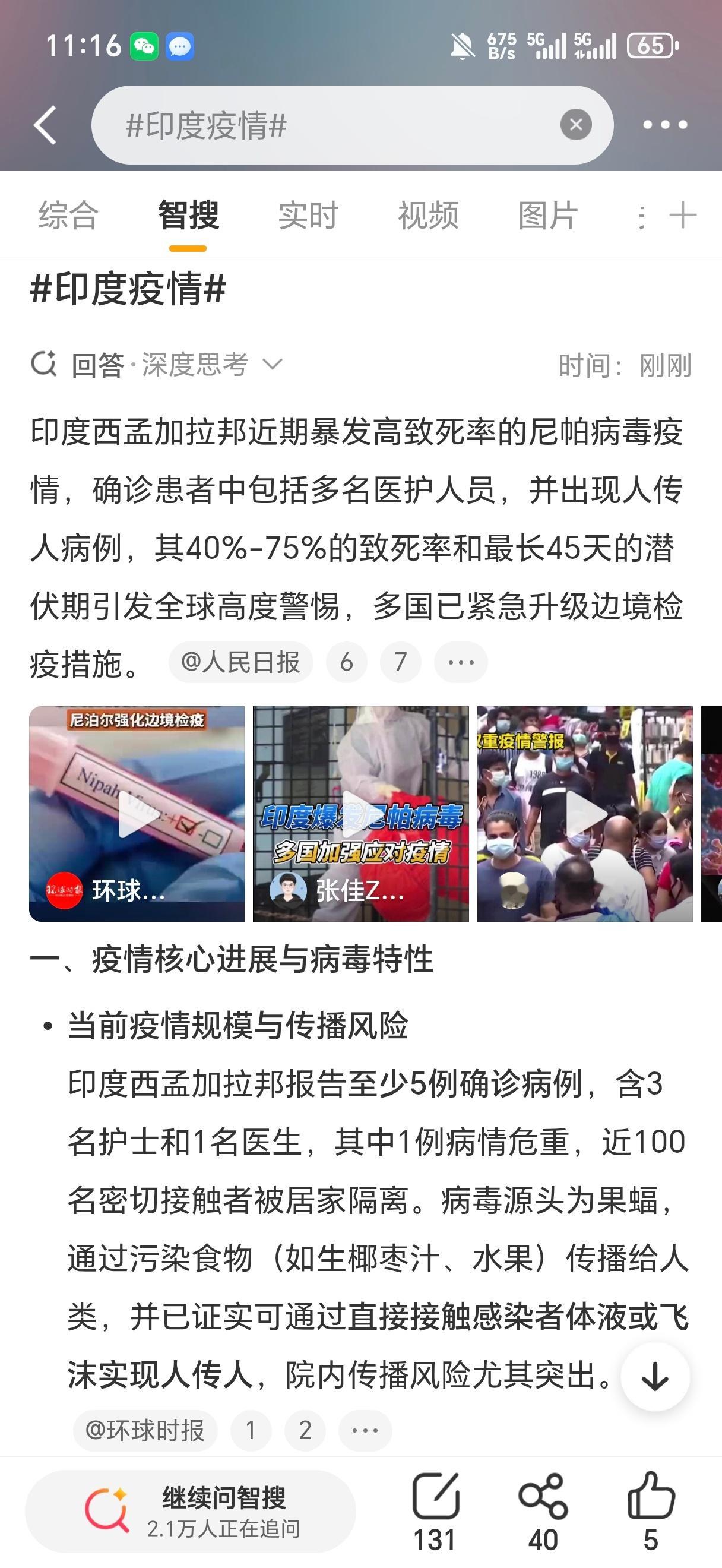 印度疫情不是吧,又有疫情了啊,而且没有疫苗没有特效药,并且致死率非常高,我滴乖乖,边境管控要严防死守了,感觉这个病毒好可怕啊!