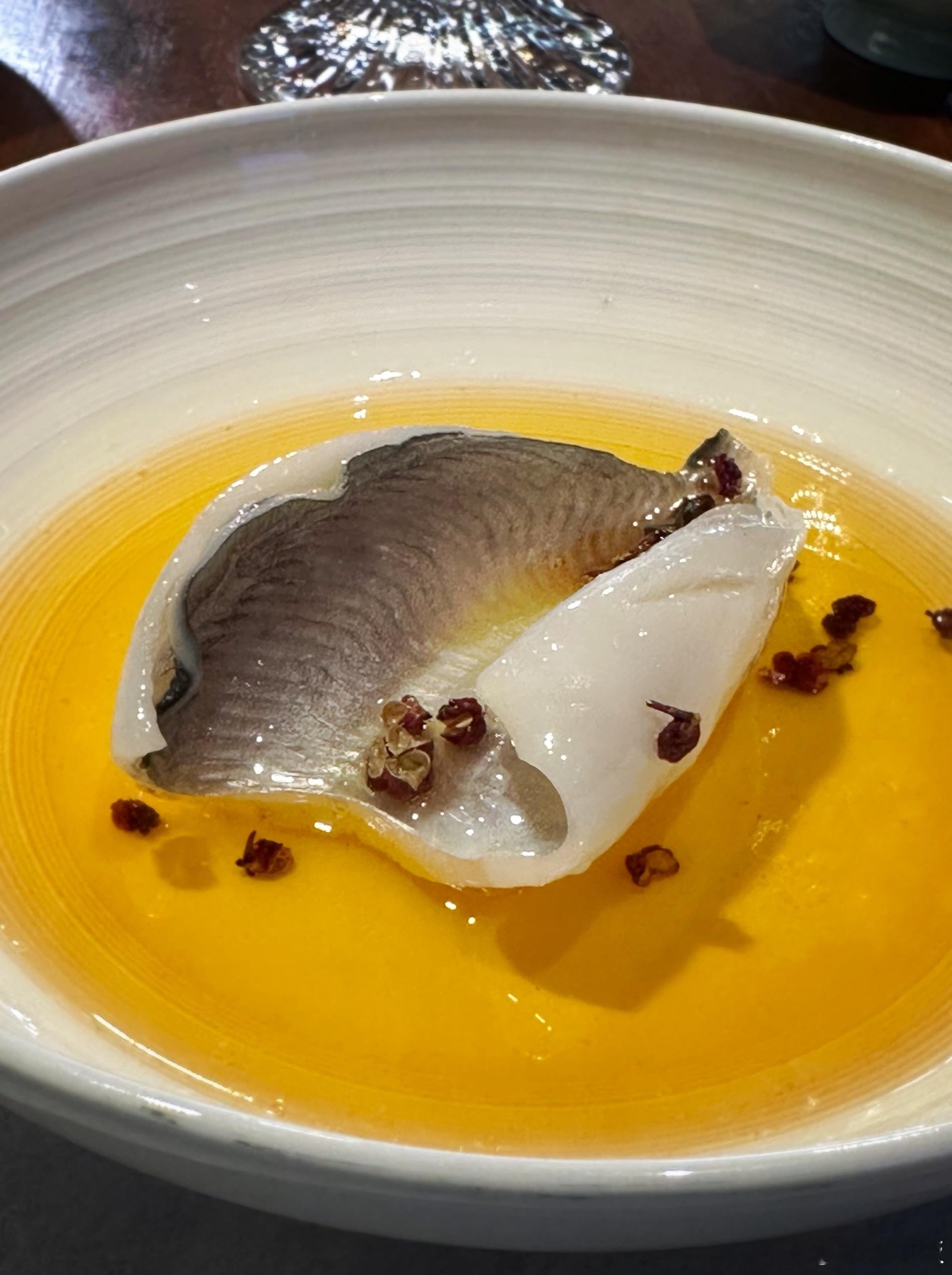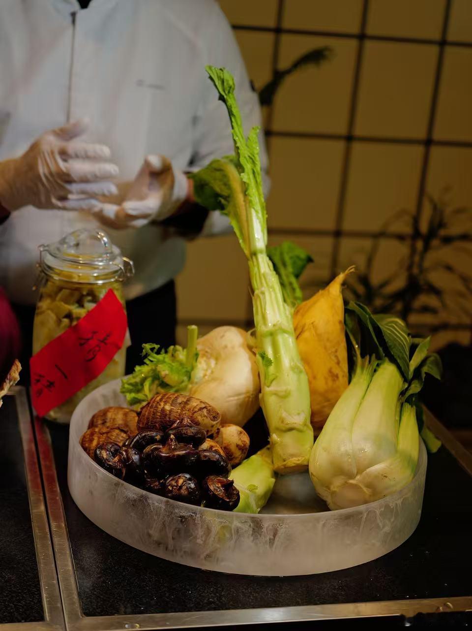 📍东临观海台州乌鱼籽、流皮带鱼、海钓毛虾、鸡油鲳鱼、黄琅沙蒜、本地望潮、乌狼鲞菜脯、糯到无筋的高山萝卜、甜丝丝的黄土岭冬笋、粉糯沙埠芋艿、清脆的挂霜店头马蹄……台州的好食材可是个个有讲究的,别说鱼虾蟹了,一个萝卜、芋艿都有名有姓有来历。东临观海 把台州丰盛的渔获、山野物产做成“顺哥一桌菜”。菜单不固定,顺哥会根据当季物产做出一桌最正最民间的台州风味。 上海·东临观海和兴1913