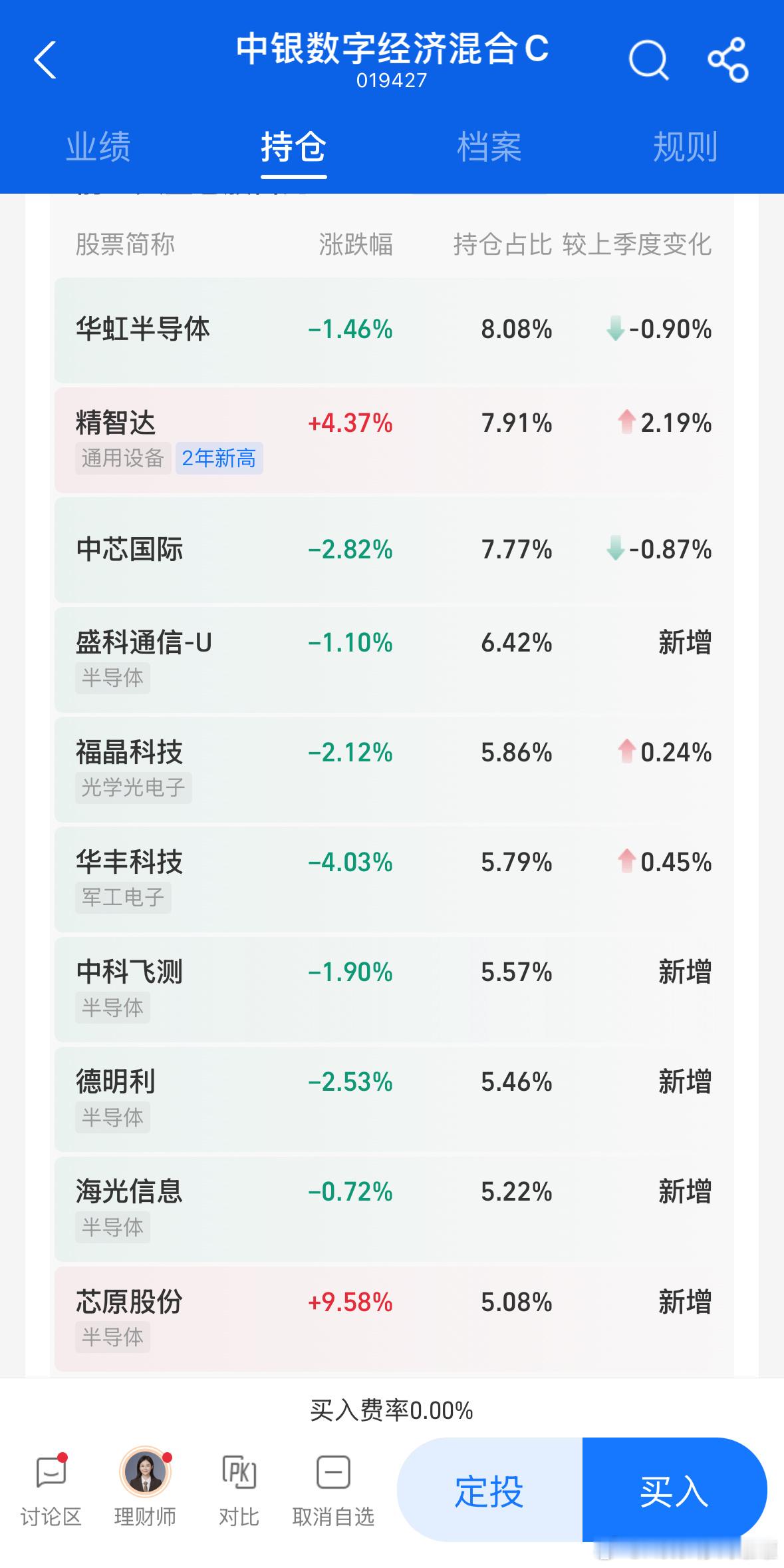 中银数字持仓有存储和半导体设备,难怪业绩这么优秀,而且相对于其他数字经济跌幅很浅,经理真的很有水准,贰六年最爱的基金。