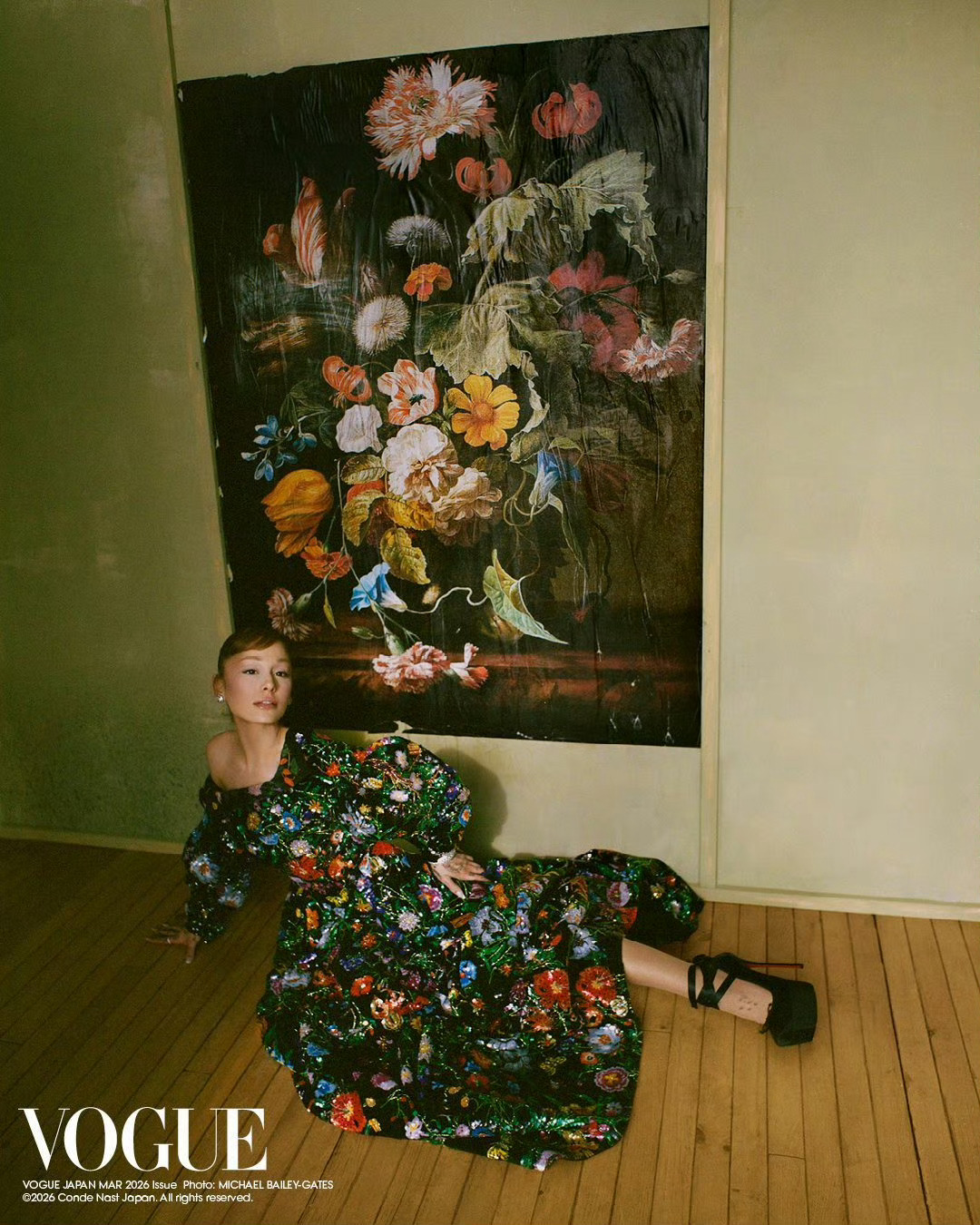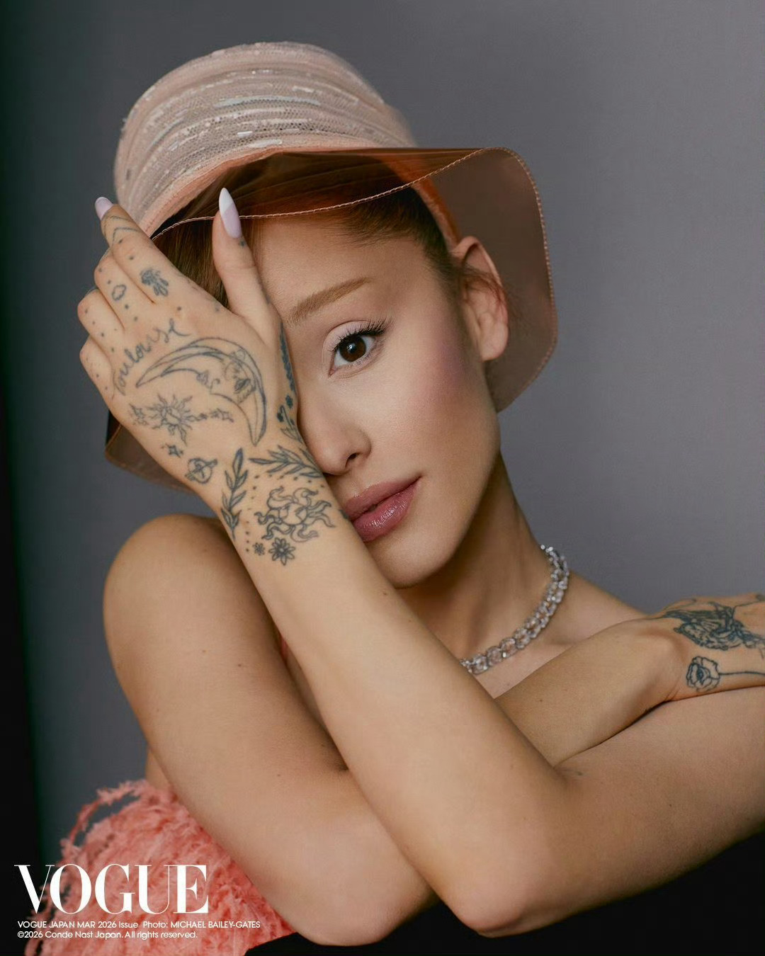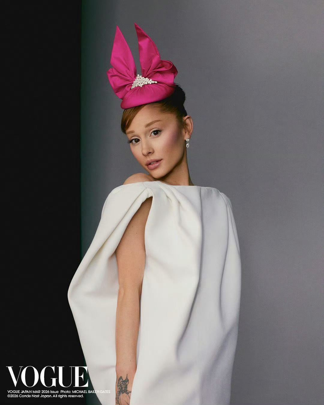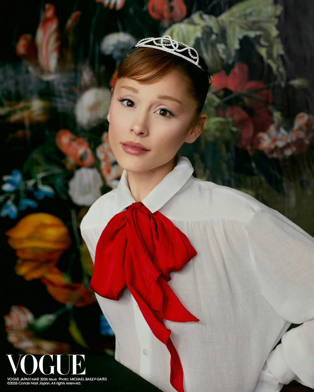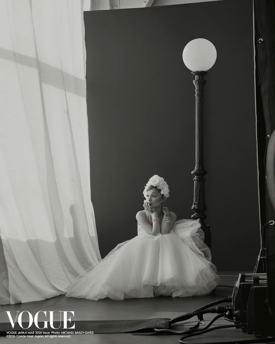 Ariana Grande x Vogue Japan March 2026,日版VOGUE三月刊封面迎来Ariana Grande亮相,身穿Balenciaga 2026春夏新季系列出镜。摄影:Michael Bailey Gates 拍的好老气~