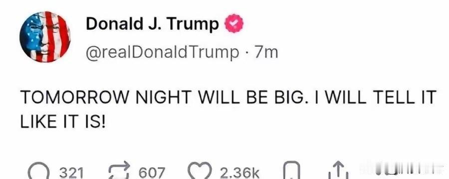 特朗普又发推特了,说今晚会有“大惊喜”难道是内衣?各路大神给分析一下!