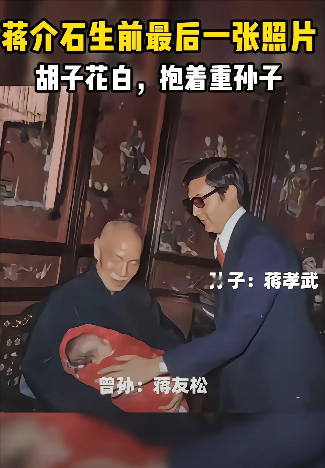 这是将介石89岁去世前两月照片,将介石很幸福,人生最后,还抱到了曾孙。