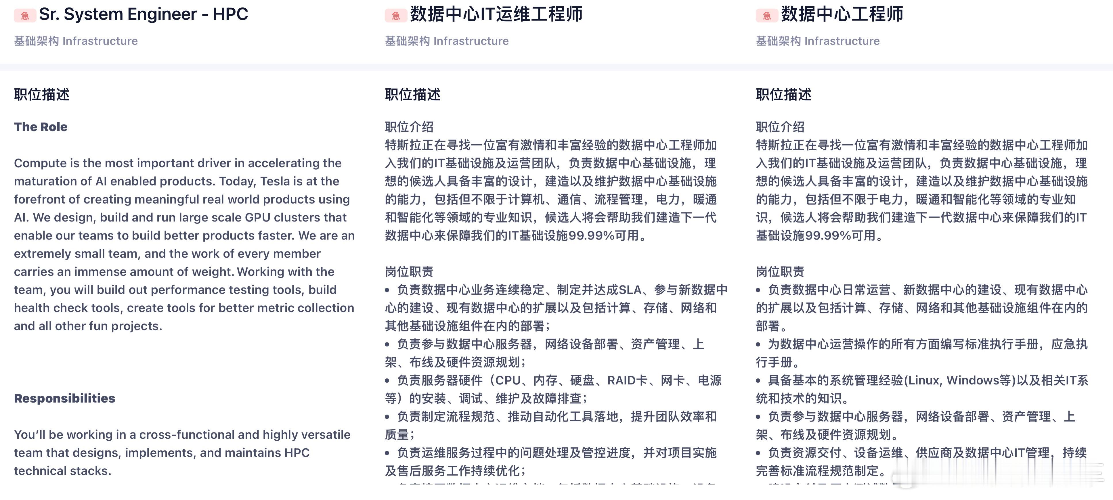 特斯拉Model YL 的最新系统中出现了语音助手,先是与豆包大模型、DeepSeek合作大语音模型,最新这个「模型后训练」算法岗位也在暗示什么,关键词: 本地化顶尖硬件资源、模型微调与训练,特斯拉语音这个模式和国内的车机导航地图类似,由百度地图提供数据、特斯拉自研路径规划算法,特斯拉不会把这些智能生态完全交给合作供应商,尤其是语音、导航这种直接人机交互的应用服务;而特斯拉在本地部署数据中心已经是明牌的事情,目前特斯拉中国也正在招聘数据中心相关的岗位,前面说的的语音大模型以及未来FSD 都需要用到,结合最近英伟达 H200 的情况来看时机也成熟了。AI 对特斯拉来说依旧是全球战略,尤其是在中国市场这是重中之重。特斯拉新能源汽车