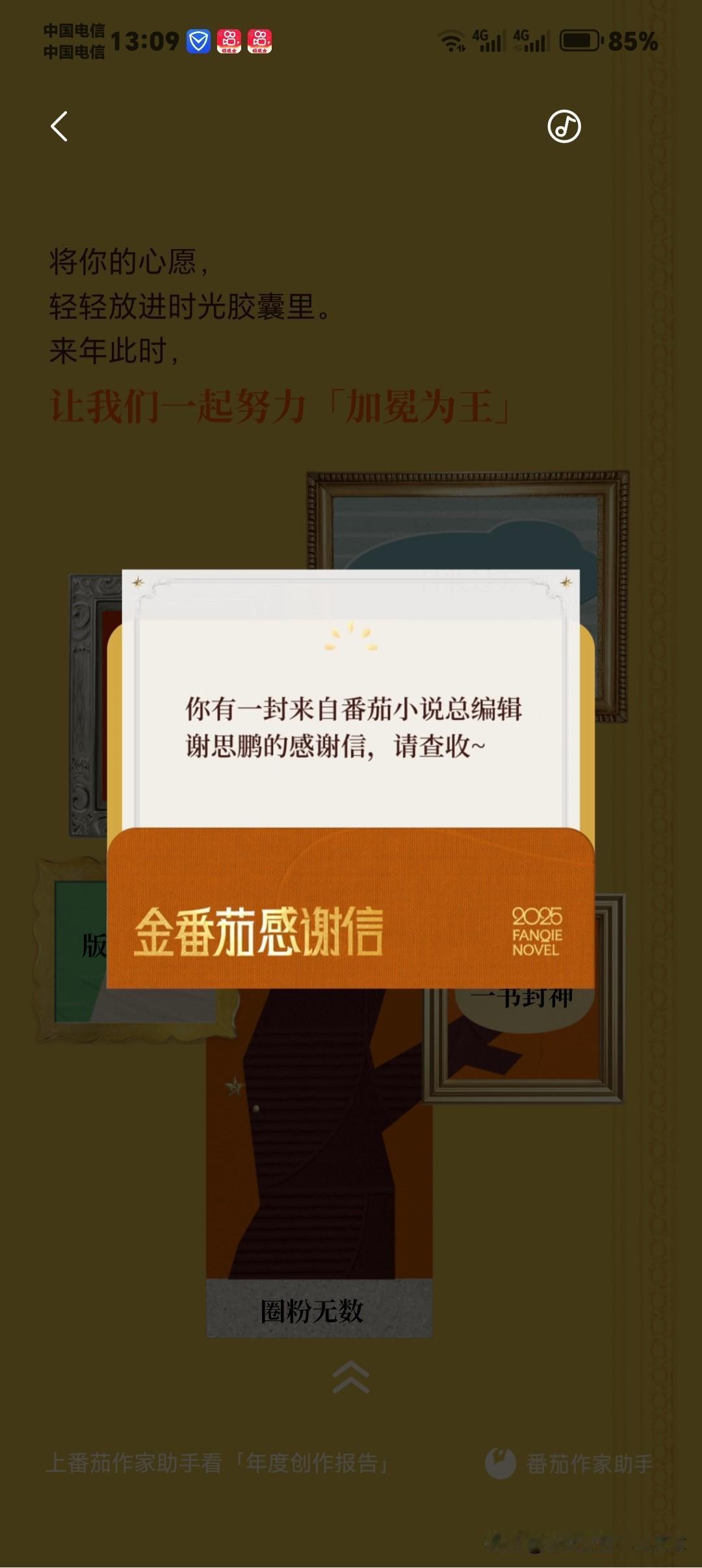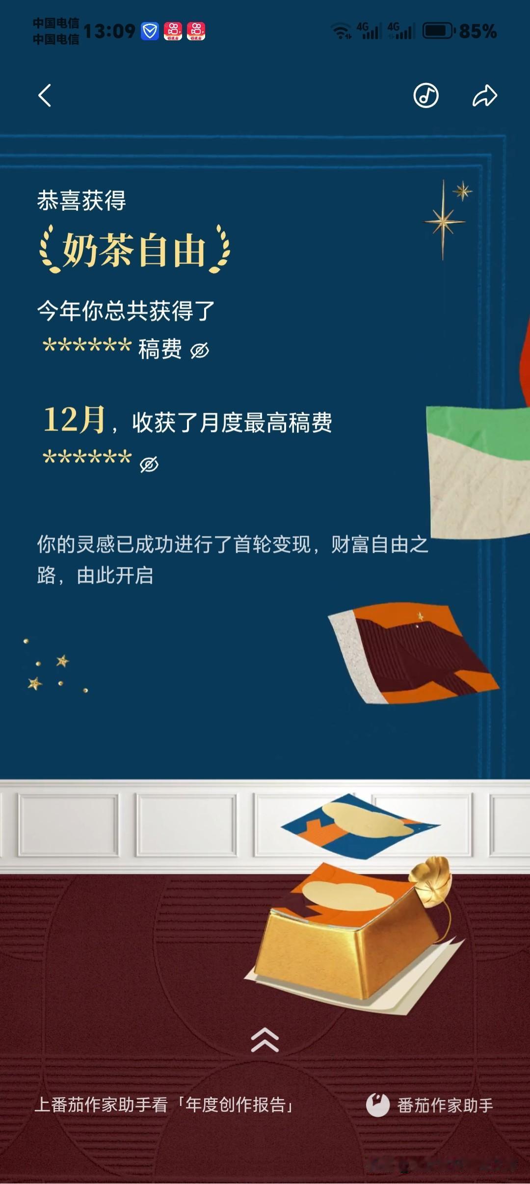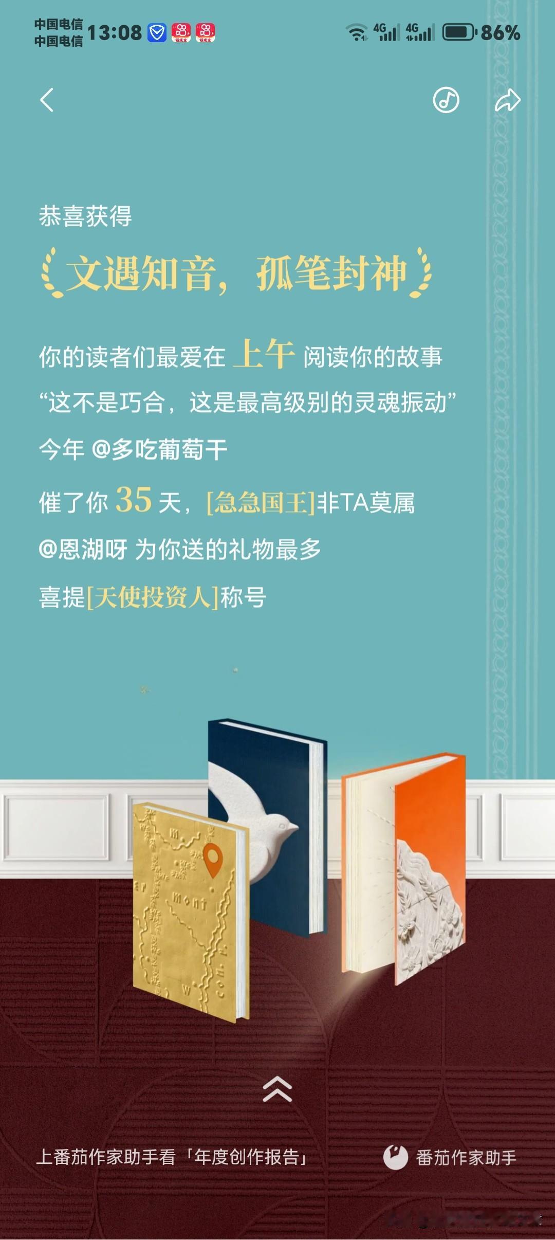 今天看到番茄小说给我的2025年度金番茄创作报告,真的又感动又踏实!这一年,我拿到了满满一堆荣誉:金番茄最佳创作人、大佬偷偷刷副本、金番茄大文豪、重生之我在番茄狂上分、重生之我是音乐节大咖、文遇知音·孤笔封神、奶茶自由。 最让我触动的是“孤笔封神”——从不写同人、不蹭热度、不模仿别人,完全靠自己的原创赛道走到现在,不仅被平台认可,还实实在在拿到了可观收益,这份双向奔赴太珍贵了! 特别感谢番茄小说总编辑谢思鹏的鼓励与支持,也感谢平台给我展示自己、实现价值的机会。 更要感谢一直陪我走到现在的读者们,谢谢你们的催更、追更和陪伴;也感谢像恩湖呀这样在不同作品里默默支持过我的读者,你们的喜欢,我都记得。 未来会继续死磕原创,写出更硬核、更热血的故事,不辜负这份认可与期待❤️ 番茄小说 金番茄奖 网文作者 原创小说 硬核军事小说