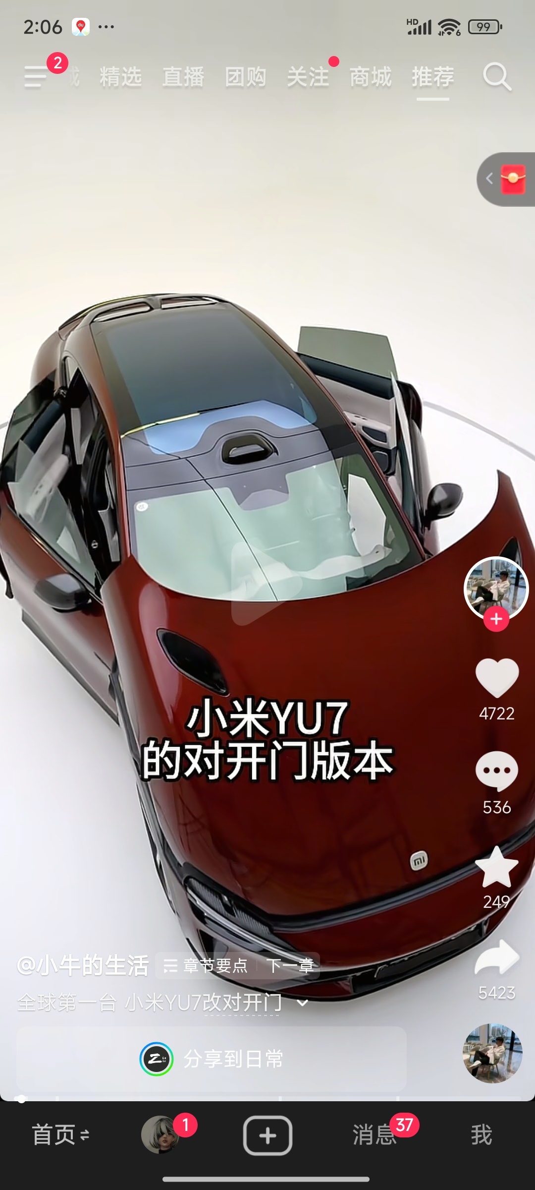 小牛的小米YU7对开门改装完了除了后门把手略糙了点,其他完美