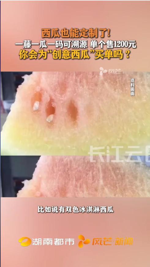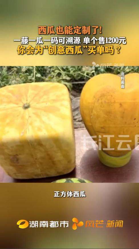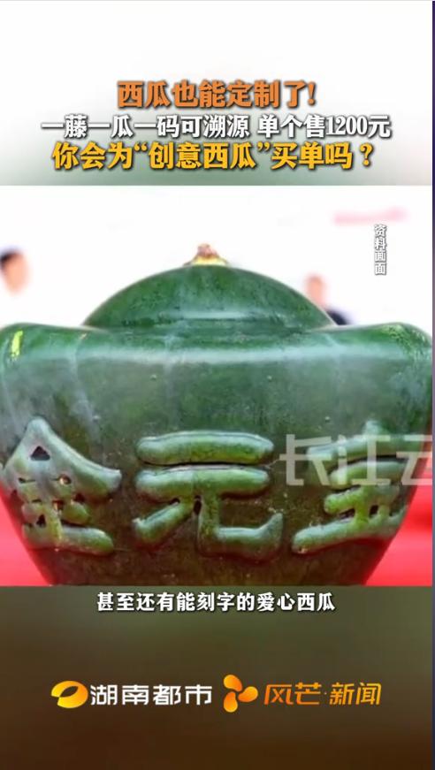 “开眼界了!”近日,湖北石首,一研究社竟研制出“高端定制西瓜”,可以根据要求培育出不同形状和口味,单个售价高达1200元!甚至一藤一瓜,一瓜一码,还可以扫码查看。甚至主要功能用于求婚。网友:一个西瓜堪比黄金,真的有人买单? 西瓜本是夏季平价解暑水果,外表基本是绿色条纹的圆形,但是如今竟被玩出“定制”新花样。 据媒体1月24日报道,当地农户推出了一款定制西瓜,主打“一藤一瓜一码可溯源”的特色,就是每颗西瓜都只长在一根藤蔓上,保证养分充足;同时配有专属溯源码,扫码可查看西瓜的种植、生长、采摘全流程,主打“高品质、可追溯”。 为了打造这款“定制西瓜”,农户采用精细化种植模式,从选种、施肥到浇水,全程严格把控,甚至为每颗西瓜搭建专属“生长棚”,避免外界损伤,确保西瓜品质。可这份“精细化”,也让成本大幅飙升,最终定价单个1200元,堪称“西瓜界的爱马仕”。 这款天价定制西瓜推出后,瞬间引发热议,不禁有人质疑,价格太离谱,纯属智商税,真的有人买吗? 农户却表示,定制西瓜的品质远超普通西瓜,口感更甜、水分更足,且可溯源保障安全,1200元的定价是成本与品质的体现。 网友表示,太离谱了,真是活久见,再这么发展下去,普通人可就要吃不起西瓜了!你会为这种创意买单吗? 信息来源:《西瓜也能定制了!一藤一瓜一码可溯源单个售1200元你会为“创意西瓜”买单吗?社会新闻