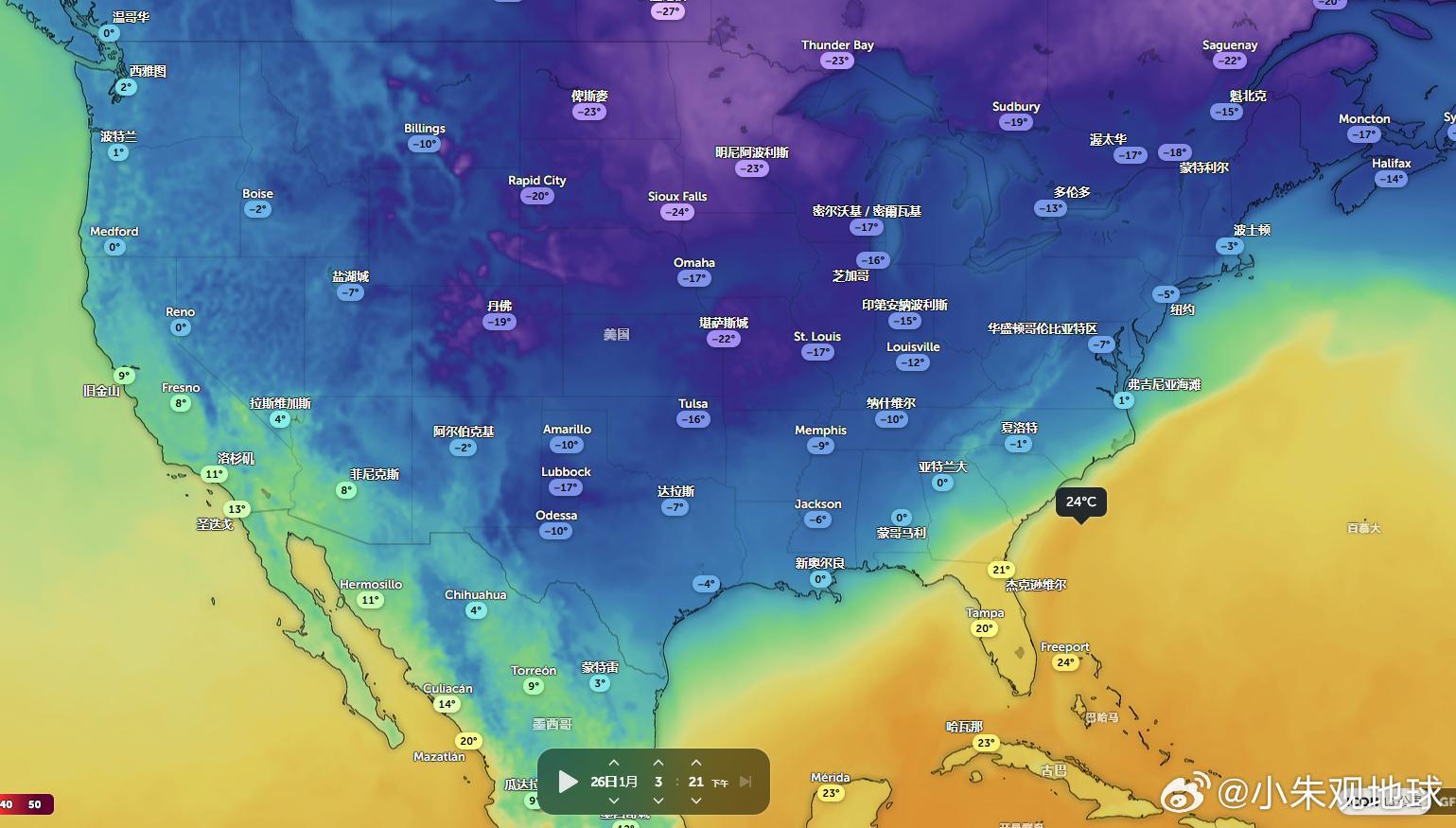 全美,除了佛州都冷透了极端天气美国极寒天气