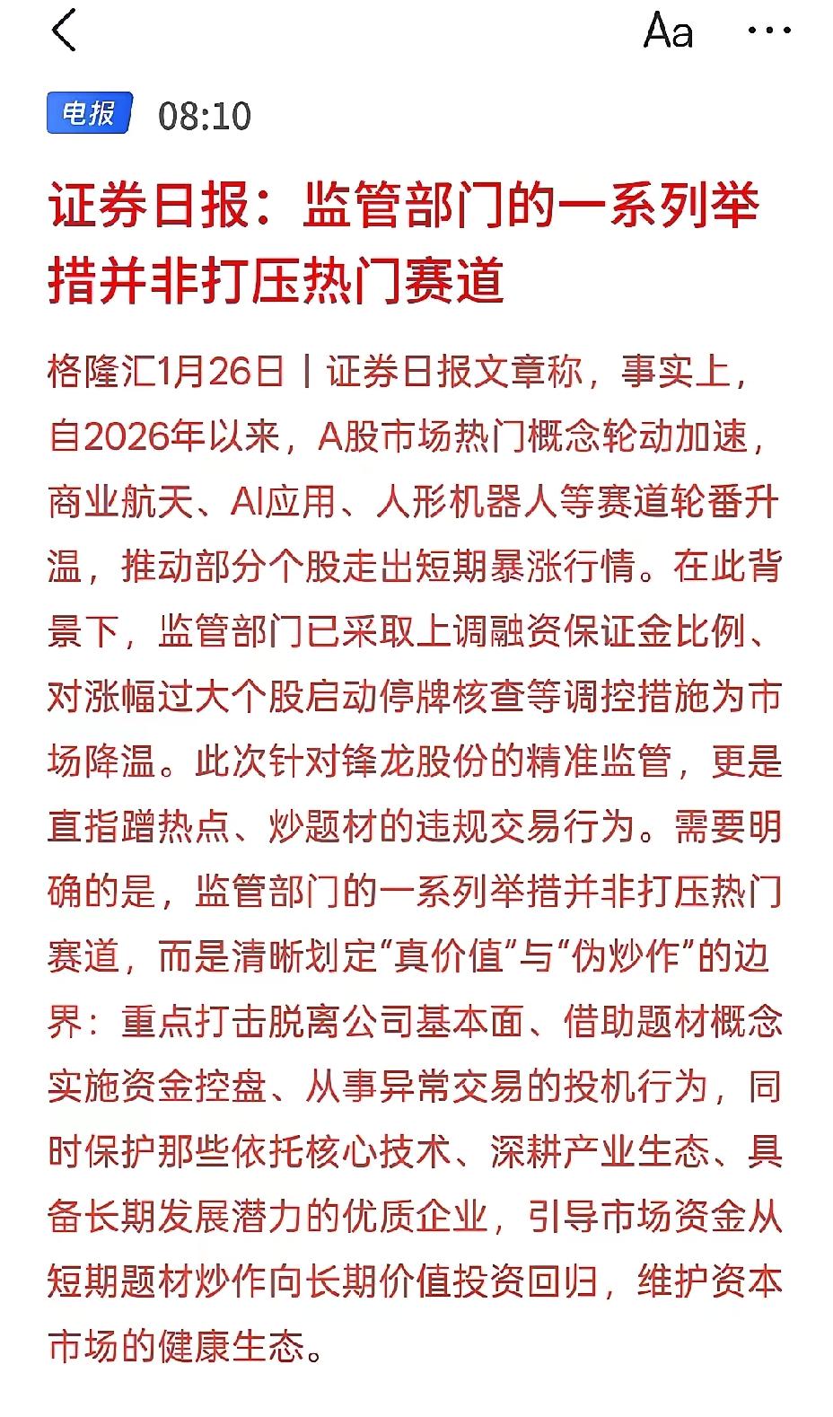 证券日报:早上已经证实,监管部门,一系列监管措施,打压热门赛道。(看下图内容)