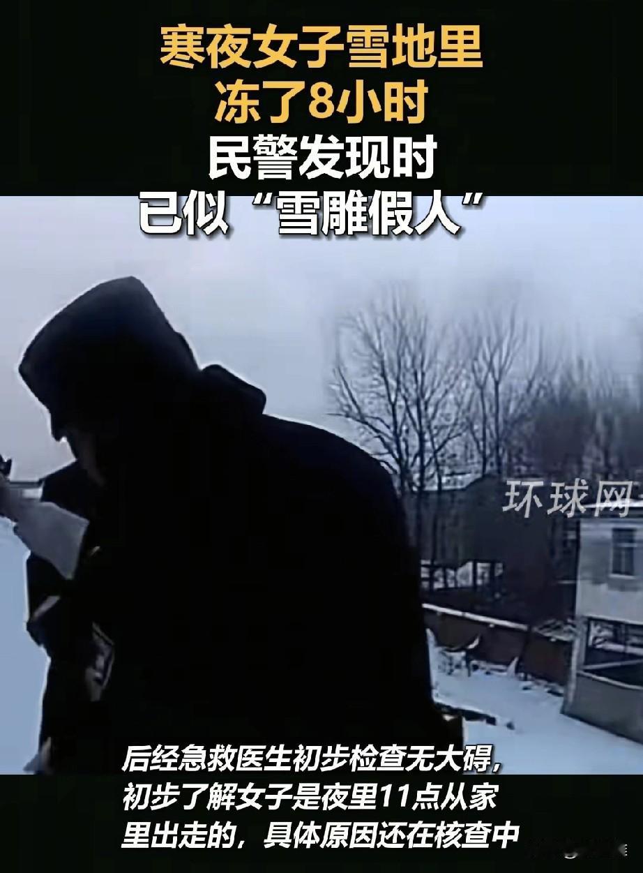 太惊人了!安徽一位民警清晨巡逻时,远远看见雪堆里站着一个像“假人”的身影。走近才发现,那竟是一位活生生的女子,已经在冰天雪地里冻了整整八个小时,全身都僵了。民警赶紧把她从雪坑里拉出来,扶上警车,打开暖气让她取暖。好在经过检查,女子身体没有大碍。 据了解,当天早上七点多,民警接到报警说淮河大坝的雪地里好像有个人。赶到后发现一名穿着睡衣的女子,头发、眉毛都结满了冰霜,只有眼睛还能微微转动。民警合力将她抬上车,并送往医院。 女子说自己前一晚十一点左右就从家出来了,直到清晨被救,在雪中已呆了八小时。这么冷的天,能这样撑过来,真是命大。 至于她为什么会在雪地中独自待上一整夜,目前还不清楚。网友们也议论纷纷:有人猜是不是家庭矛盾一时想不开;也有人感叹她实在能抗冻,换成别人可能早受不了;更多人提醒,生命宝贵,千万别拿身体赌气,冬天户外长时间停留非常危险。 这次多亏民警及时赶到,避免了更严重的后果。这也提醒我们:严寒天气尽量减少外出,务必注意安全。不管遇到什么情况,保护好自己才是最重要的。