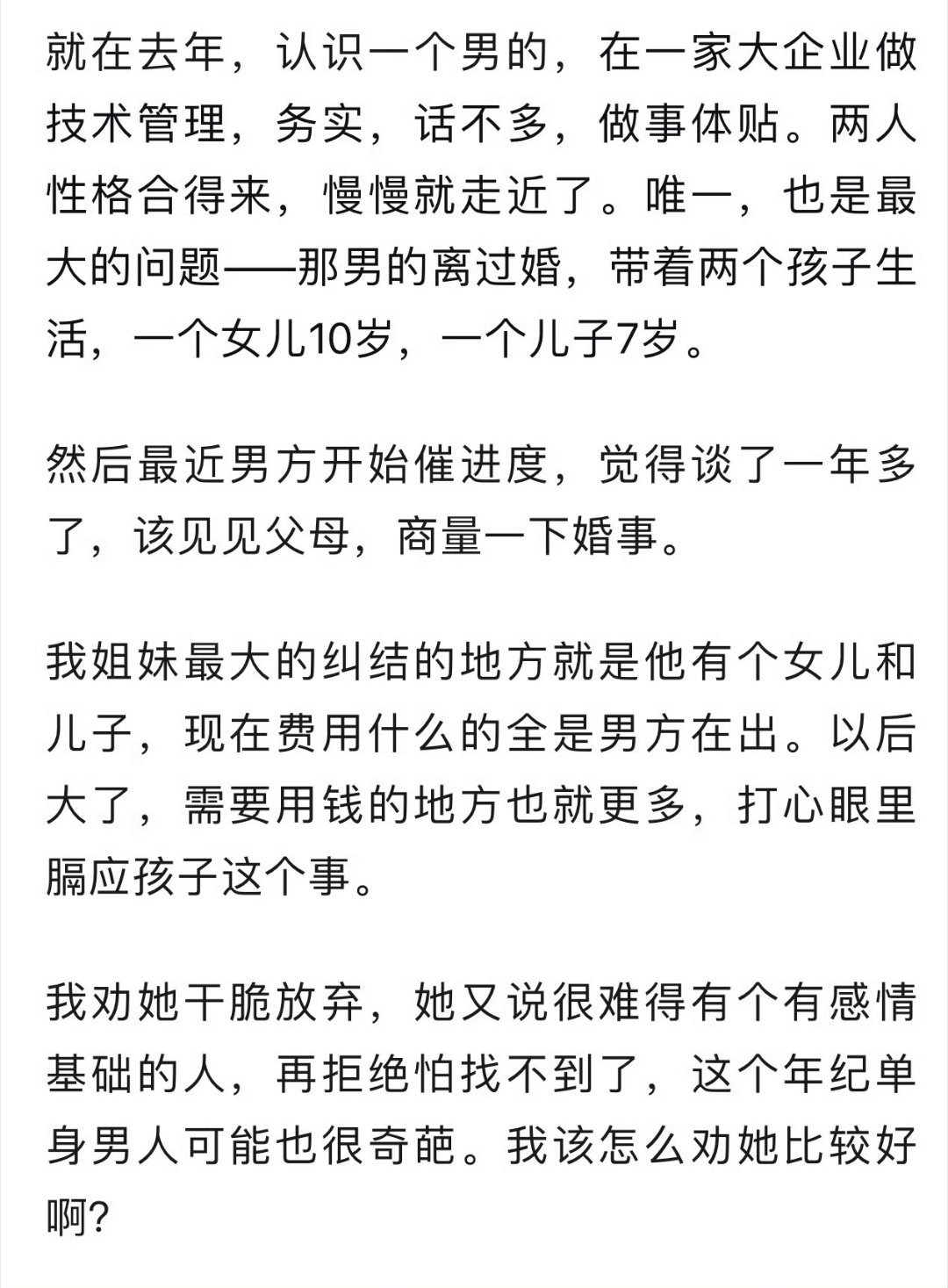 39岁未婚女该不该接受离异有小孩的男人 扎心!39岁未婚女,该不该接受离异有女儿的男人?余姚阿姨吵翻了,要怎么劝来源:余姚生活