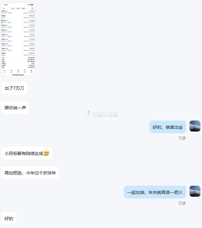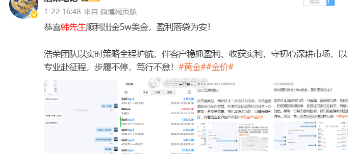 恭喜韩先生顺利出金7w美金,盈利落袋为安!出金落袋,实现财富自由,是我们始终锚定的终极目标。浩荣团队的交易策略,向来清晰明确、逻辑笃定,于投资者而言,真正需要的正是这样一份稳实的规划与坚定的指引。唯有如此,风雨来袭时方能安如磐石、从容不迫,守得住本心;机遇降临之际,才可精准把握、步步为营,不错失良机。黄金金价