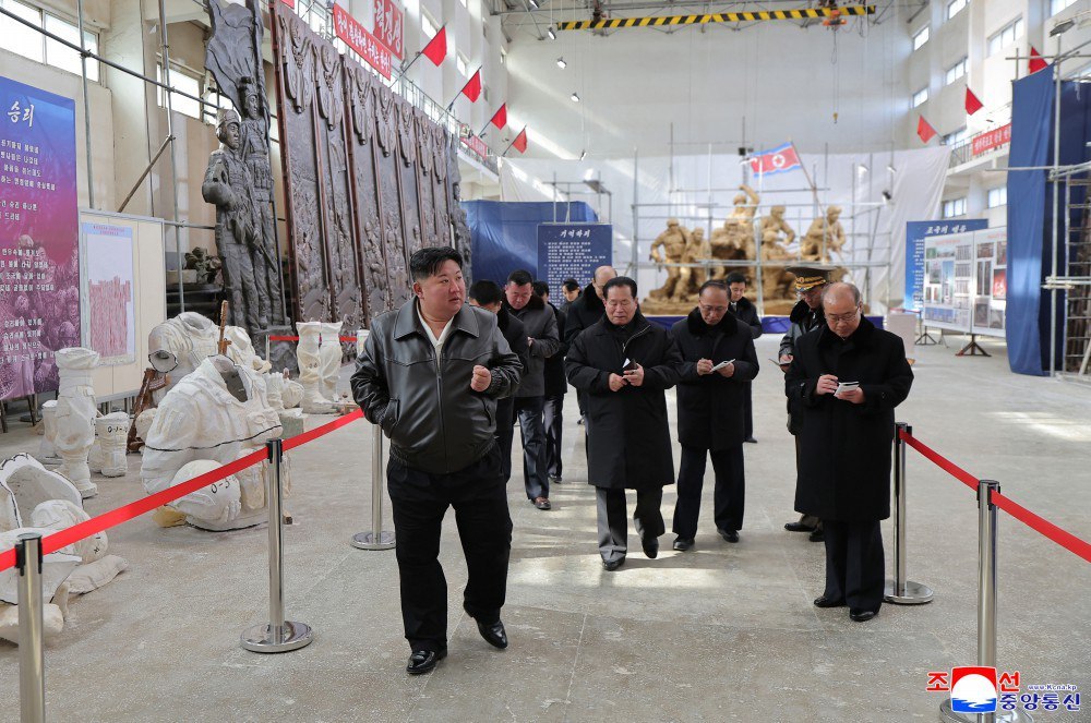 朝鲜劳动党总书记、朝鲜民主主义人民共和国国务委员长、朝鲜民主主义人民共和国武装力量最高司令官金正恩同志1月25日亲临万寿台创作社指导了将在海外军事作战功勋纪念馆建立和安置的雕像创作工作。(朝中社)热点现场