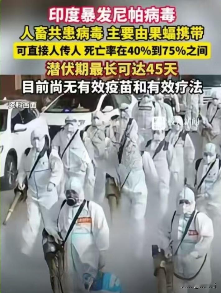 太可怕了! 印度一邦暴发大面积尼帕病毒疫情!该病毒主要由果蝠携带,可直接人传人,死亡率高达40%-75%,目前尚无疫苗和有效疗法。