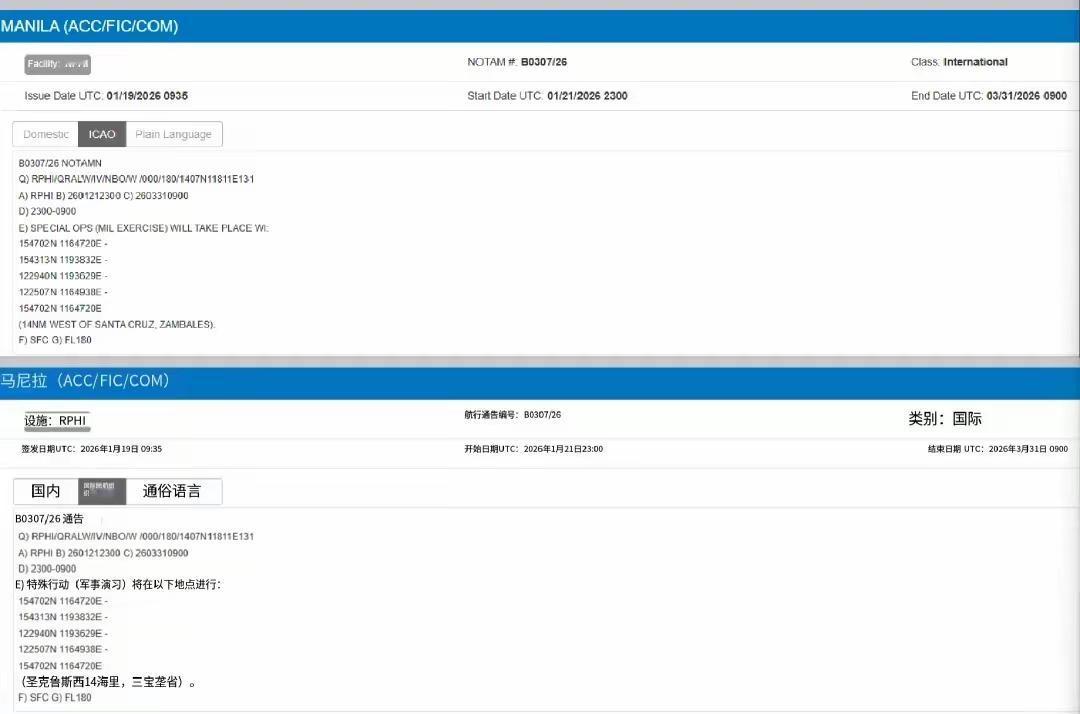 菲律宾竟要搞事!在我南海划定10万平方公里军事演习区!整个演习区基本在我九段线内,其中包括黄岩岛! 这已经是赤裸裸地挑衅我方主权了!更是无视我方的警告,一而再再而三地突破我方的底线!而且此次演习时间从2026年1月21日至3月31日,时间跨度超过两个多月。 一边对我们免签,呼吁更多中国人到菲律宾旅游、投资。一边却勾连美方,一再在我南海挑衅! 此次更是赤裸裸地侵犯了我们领土、领海主权。直接在黄岩岛与我九段线内划一片演戏区域。无异于要与我们宣战!届时我方战舰进入到演习区,菲方敢开火吗?就凭刚刚新买的2400吨巡逻艇?还是觉得美方会有火力支援? 究竟是得多疯狂,才会如此行径! 主权没有商量的余地!菲律宾到时候一定会苦果自吃! 连美方在同一区域都以摔了飞机,仓惶而走,更遑论菲律宾呢? 大家讨论下,菲律宾到底敢不敢把这10万平方公里封闭两个多月?会为这次莽撞而疯狂的行动付出什么代价?