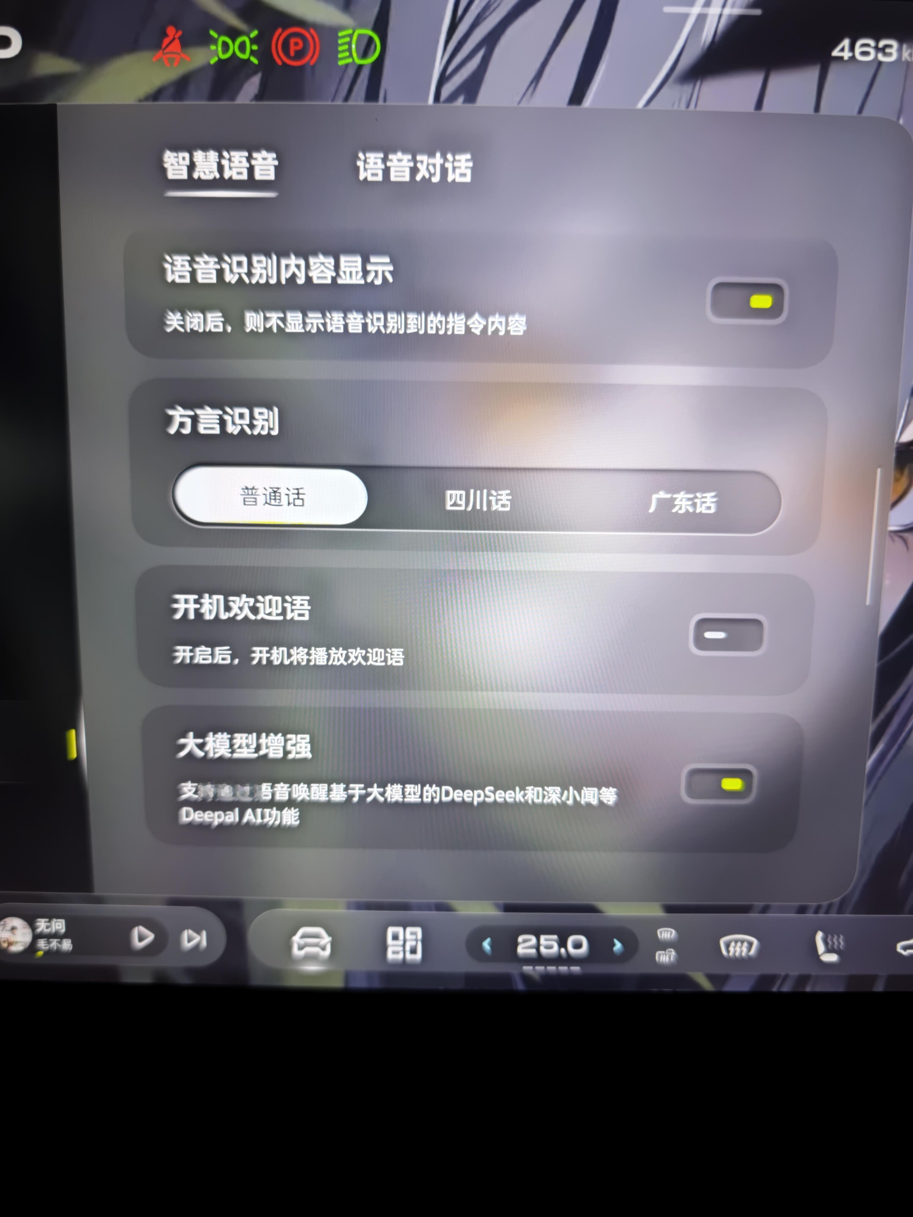 DeepalOS 4.1.0第一感觉就是UI质感提升了新的物态毛玻璃效果,调节空调、切车身颜色时光影很通透,加上 3D 车控界面里充电口开合、车窗升降这些粒子动效,整体科技感强了不少最实用的还得是柔性桌面,相当于在传统车机布局外多了个可自定义的第三桌面,导航、音乐、空调这些高频组件都能自由拖拽和调整大小。比如跑长途时可以把导航放主屏,音乐和胎压监测放侧边。日常通勤就只留关键信息,一屏适配不同场景,操作很跟手总的来说,4.1.0 让车机从单纯的功能堆砌,转向更贴合实际使用的场景化设计。配合骁龙 8295P 的算力,在同价位里智能座舱这块确实有优势了深蓝车机兴趣搭子团
