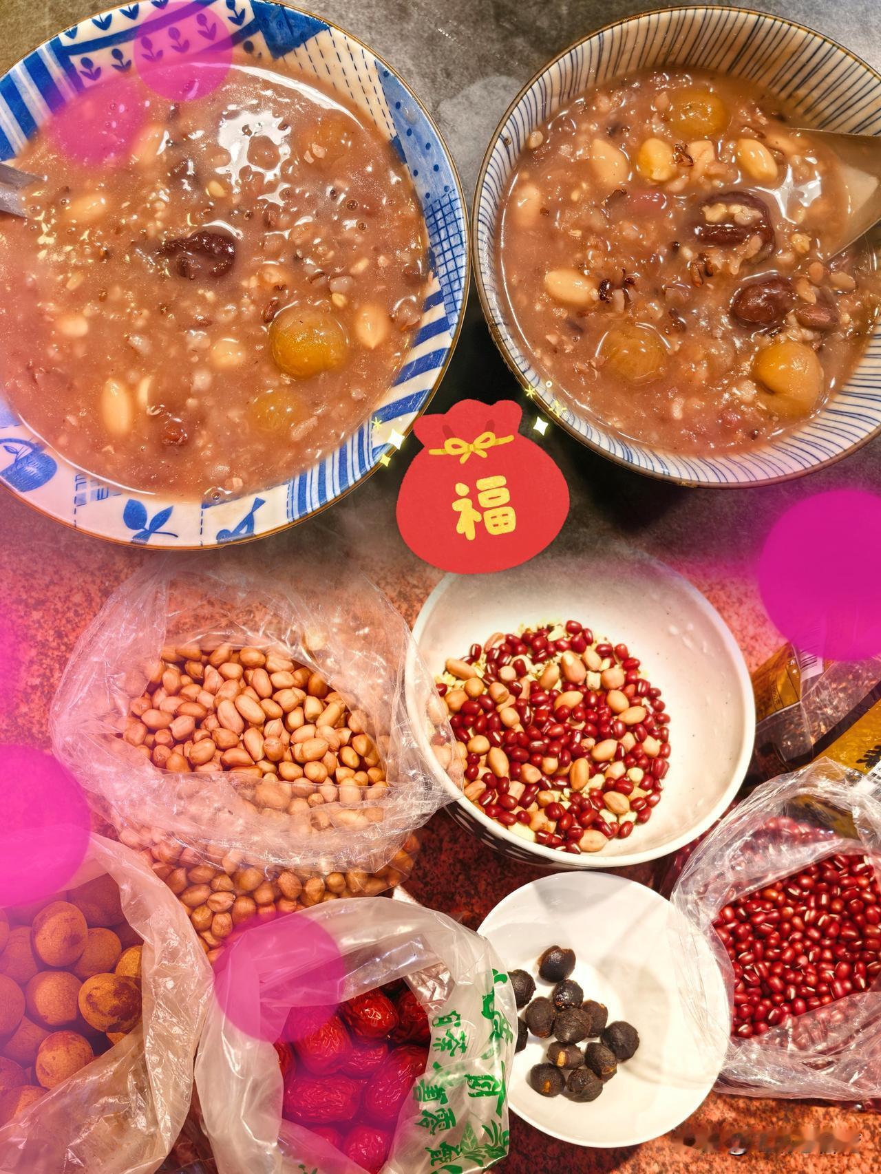 “小孩小孩你别馋,过了腊八就是年。”备齐了红豆、紫米、糯米、红枣、桂圆、花生和各