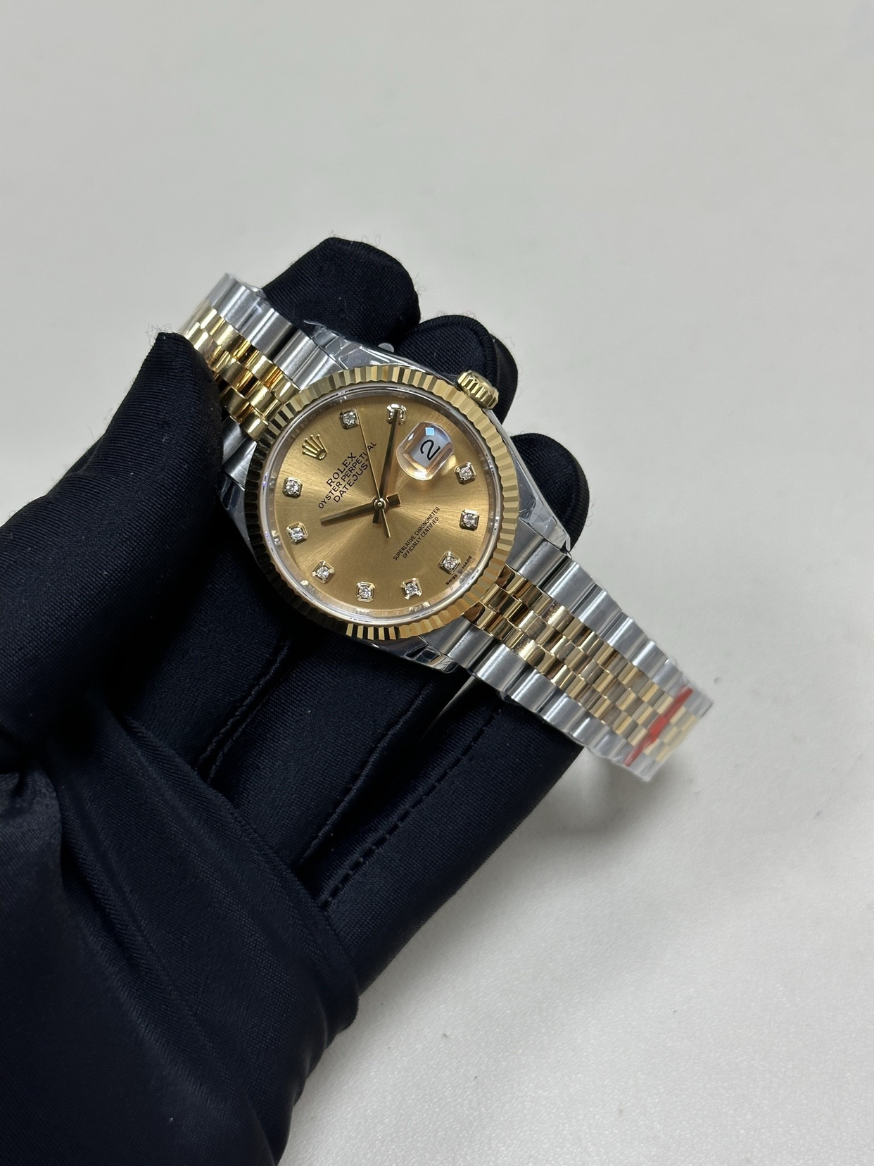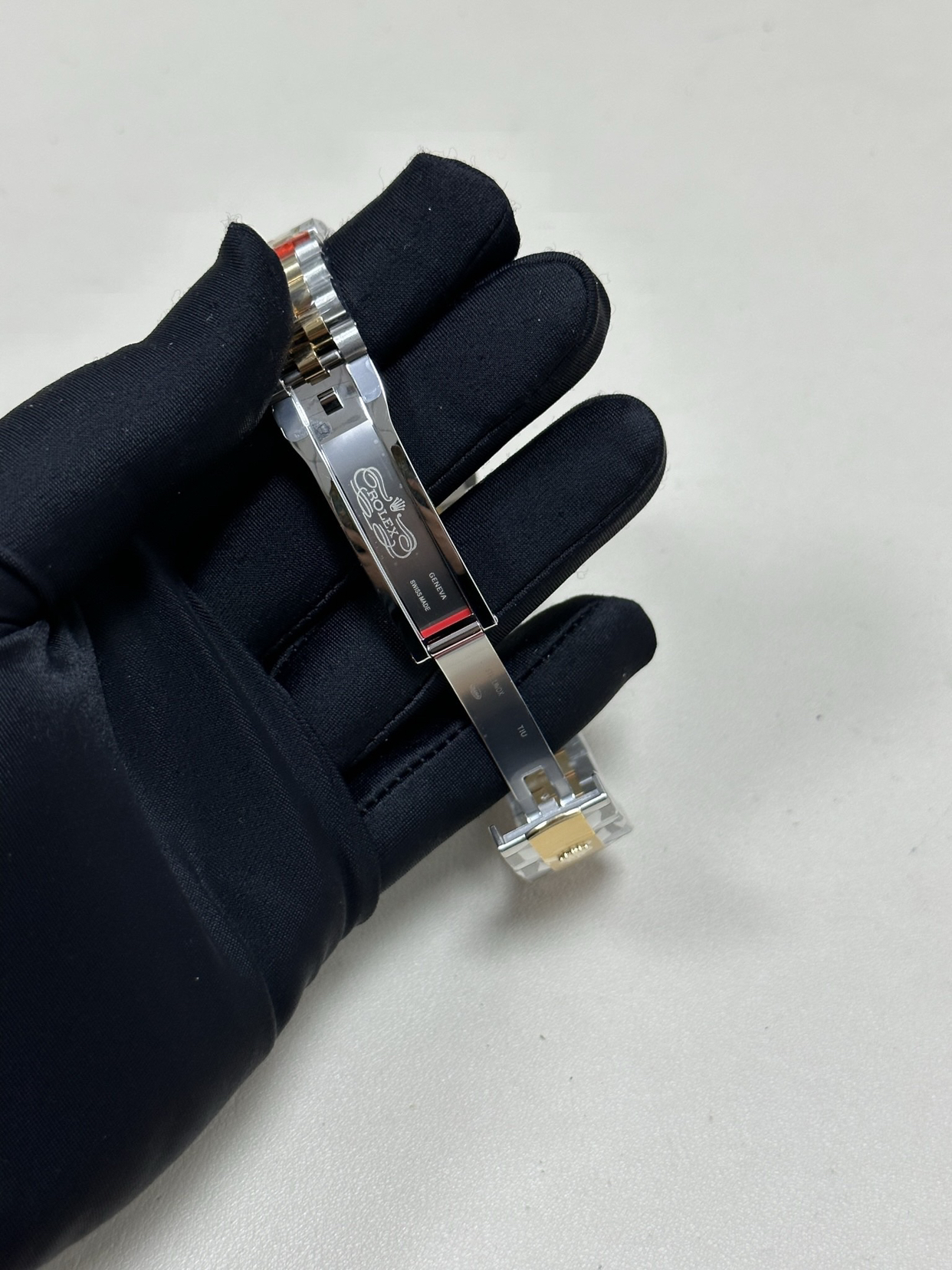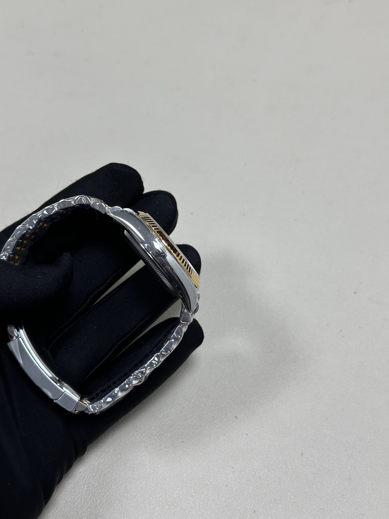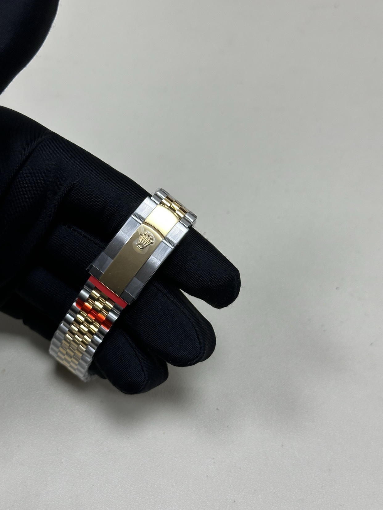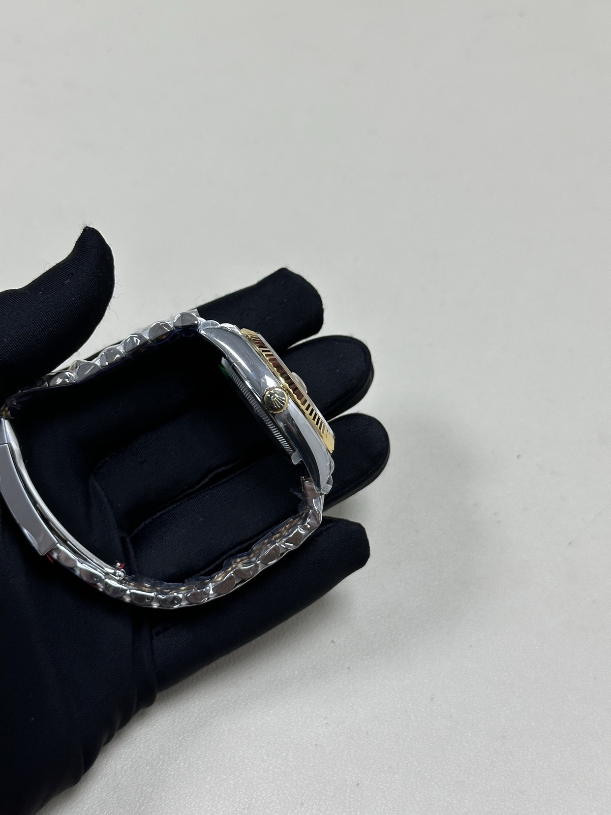 它的设计语言是纯粹的日志型——标志的三角坑纹外圈(间金款常为抛光金质)、水滴状日历放大镜、元首型或蚝式型表链中那几道画龙点睛的金色链节。一切皆经典,而间金的诠释让这份经典多了层可供玩味的温度。它不喧闹,但当你抬起手腕看时间时,那抹金色总会给你一个安静而愉快的提醒。