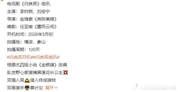 李昀锐刘些宁归良辰改编自金银错归良辰设定 李昀锐刘些宁归良辰改编自金银错,归良辰设定乱世野心家猎捕黑莲花长公主,期待住正式官宣的见面啦~