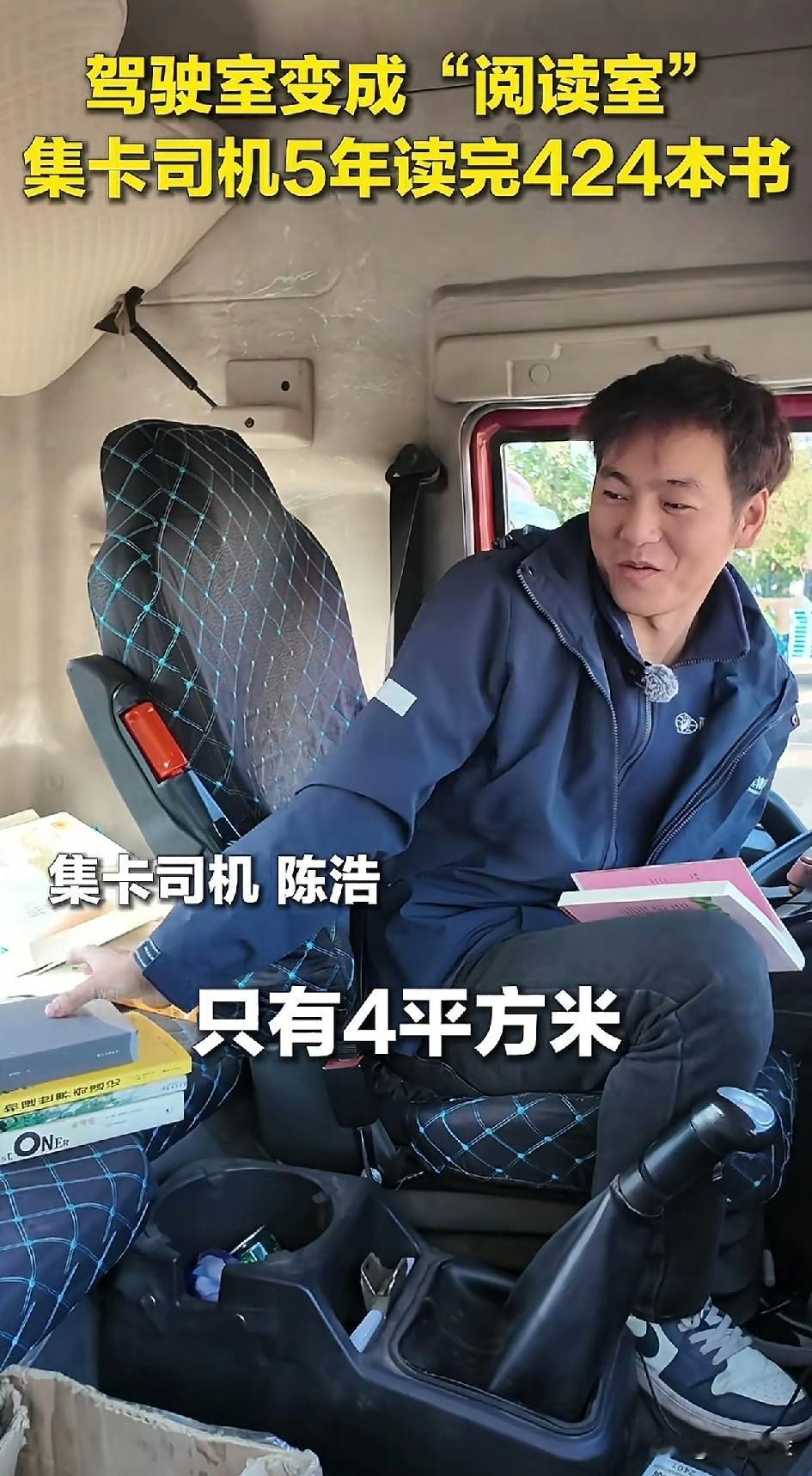 5年读424本书, 平均每年读84.8本书, 相当于每4天读一本书。 他还是个集卡司机,这毅力真的不服不行啊!