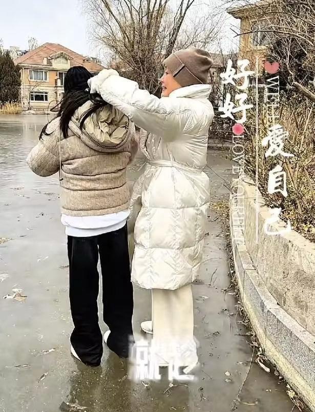 原来小杨阿姨也陪着汪小菲的两个孩子回来了。张兰发视频带着孙子孙女出门滑冰打雪仗,