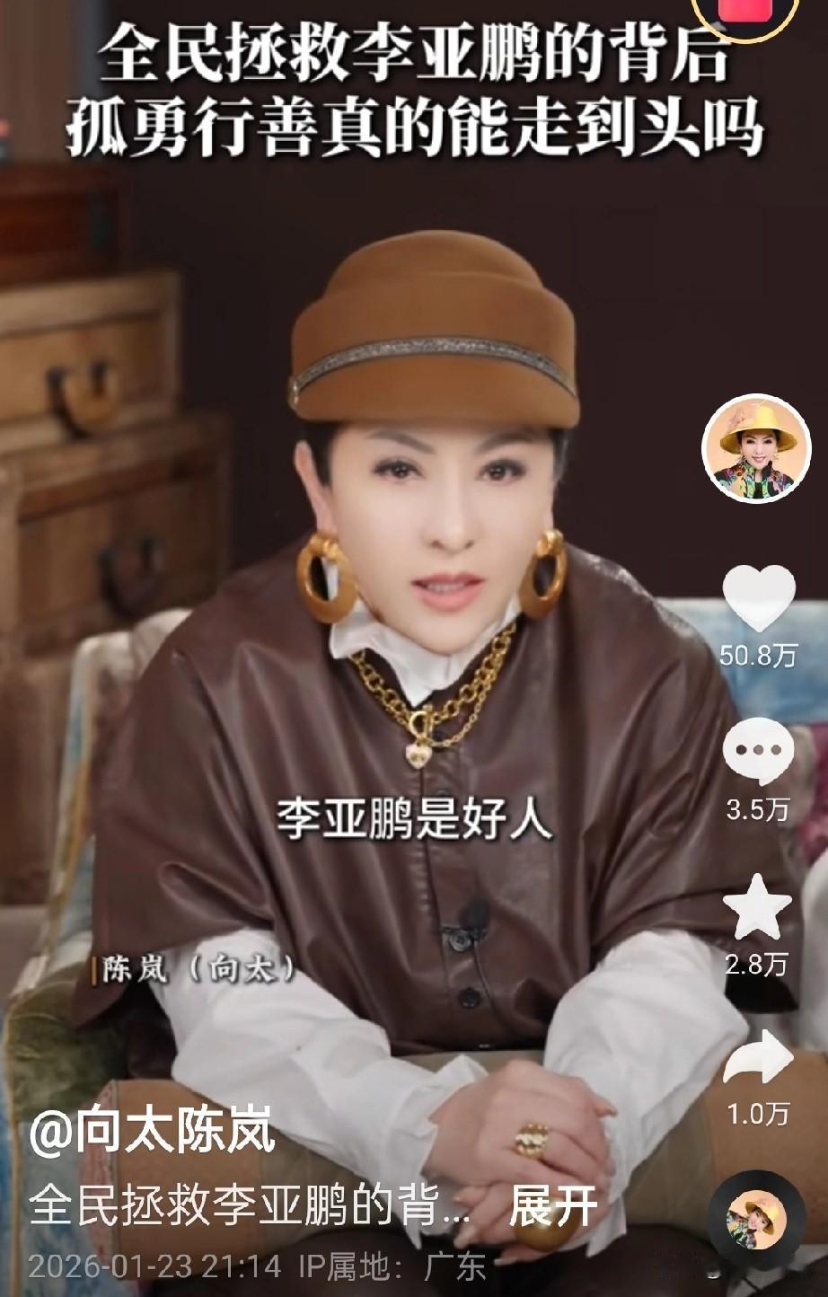 向太不愧是商界女神,人家就是有成功的资本,听向太讲话,真是享受。 向太视频里,娓娓道来的人情世故,生活百态,喜闻乐见的人和事…… 她口才很好,讲的有趣,故事性很强,又能悟出很多道理,向太的认知层面,咱是想不到的。 尤其他说李亚鹏是个好人,有大爱,但慈善不是这么做的,讲的头头是道。 看向太,彻底被她圈粉了。