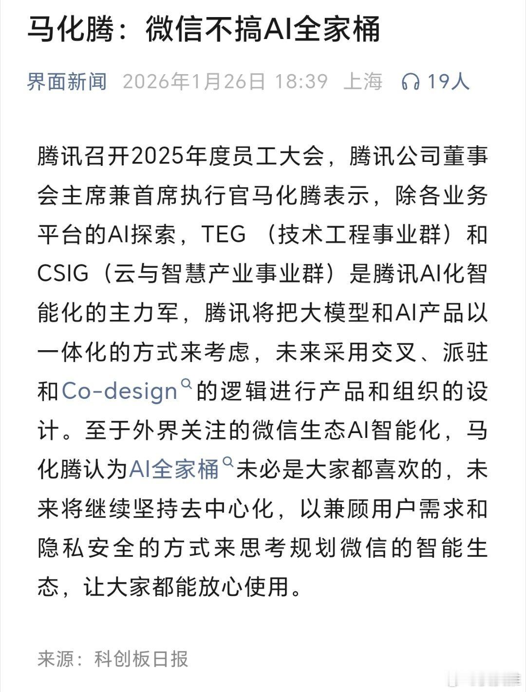 马化腾:微信不搞AI全家桶(界面新闻)科技先锋官