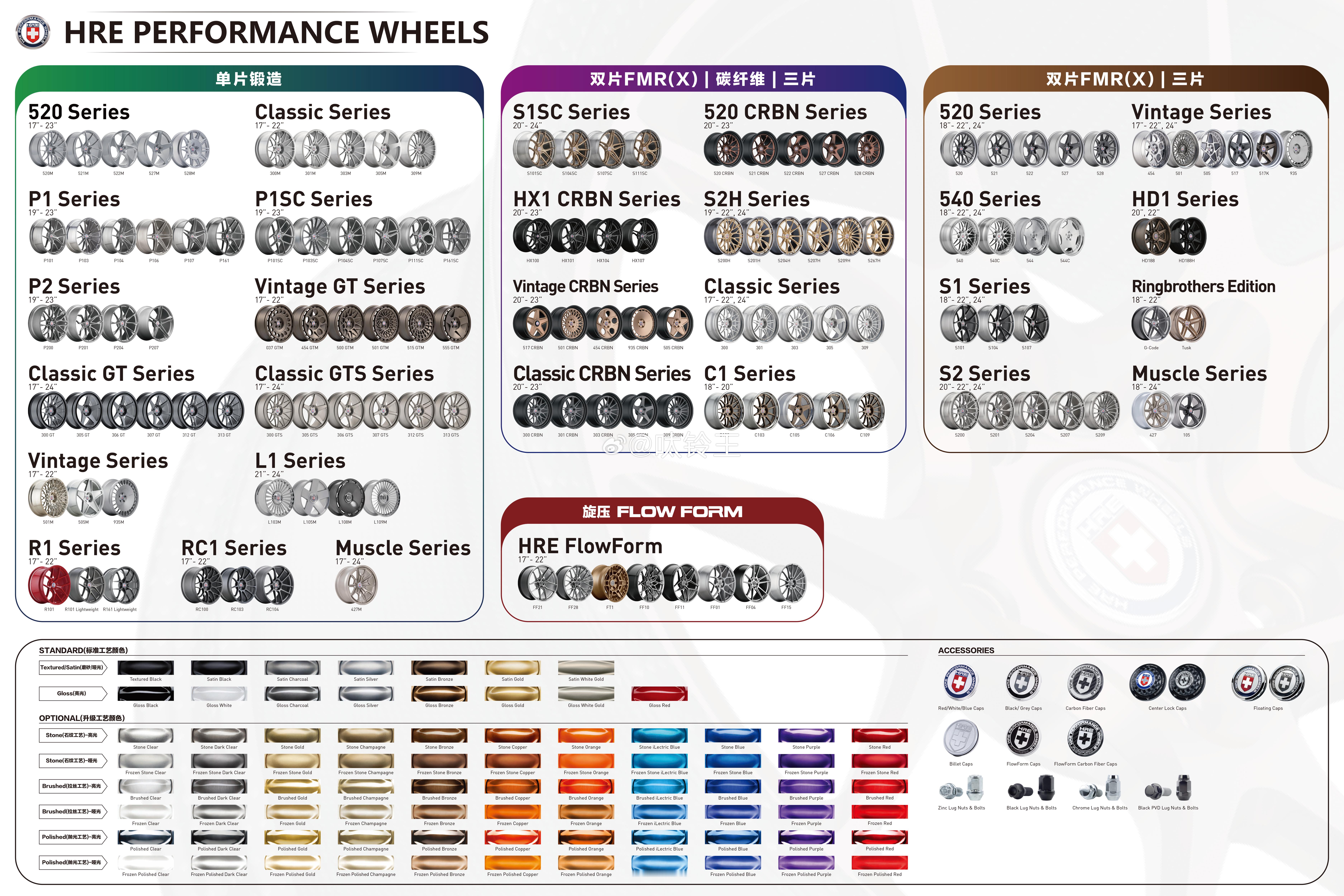 全新🇺🇸HRE轮毂全家福正品授权经销商有售,来安排一张图看懂何为轮上艺